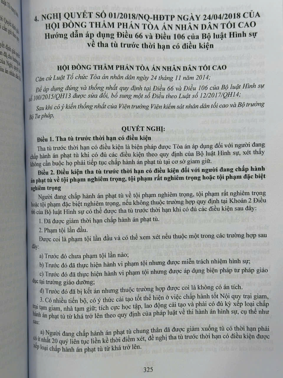 – Nghị quyết 03/2024/NQ-HĐTP ngày 10/06/2024 của Hội đồng Thẩm phản Tòa án nhân dân tối cao Hướng dẫn áp dụng một số quy định của Bộ luật Hình sự về thời hiệu thi hành bản án, miễn chấp hành hình phạt, giảm mức hình phạt đã tuyên, giảm thời hạn chấp hành hình phạt trong trường hợp đặc biệt, hoãn chấp hành hình phạt tù, tạm đình chỉ chấp hành hình phạt tù,