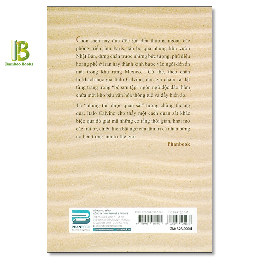 Mua tại TiktokSách - Bộ Sưu Tập Cát Cuốn sách này đưa độc giả đến thưởng ngoạn các phòng triển lãm Paris, tản bộ qua những khu vườn Nhật Bản, dừng chân trước những bức tượng, phù điêu hoang phế ở Iran hay thành kính bước vào ngôi đền ẩn mật trong khu rừng M Cứ thế, theo chân lữ-khách-học-giả Italo Calvino, độc giả chậm rãi lật từng trang trong “bộ sưu tập” ngôn ngữ độc đáo, hàm chứa một kho báu văn hóa thông tuệ và đầy biến ảo. Từ “những thứ được quan sát” tưởng chừng thoáng qua, Italo Calvino cho thấy một cách quan sát khác biệt; qua đó giải mã những cơ tầng thời gian, khai mở các trật tự, chiều kích bất ngờ của tâm trí cá nhân bừng nở bên trong tâm trí thế giới.