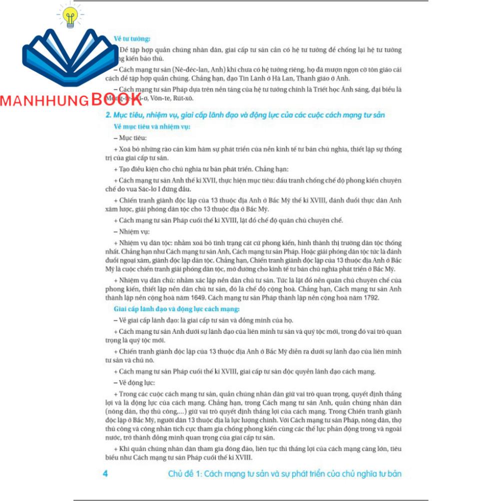 - Cung cấp kiến thức cơ bản, cô đọng nhất theo từng chủ đề, giúp các em nắm vững những nội dung lịch sử một cách khái quát, sát hợp với từng bài lịch sử cụ thể. Trong đó có cả phần kiến thức nâng cao để giúp các em hiểu sâu sắc các vấn đề lịch sử nhằm tham gia thi học sinh giỏi các cấp. – Cuối mỗi chủ đề, tác giả nêu những câu hỏi ôn tập giúp các em vận dụng những kiến thức đã học để trả lời các câu hỏi tương đối khó, tương ứng với các đề thi học sinh giỏi môn Lịch sử lớp 11.