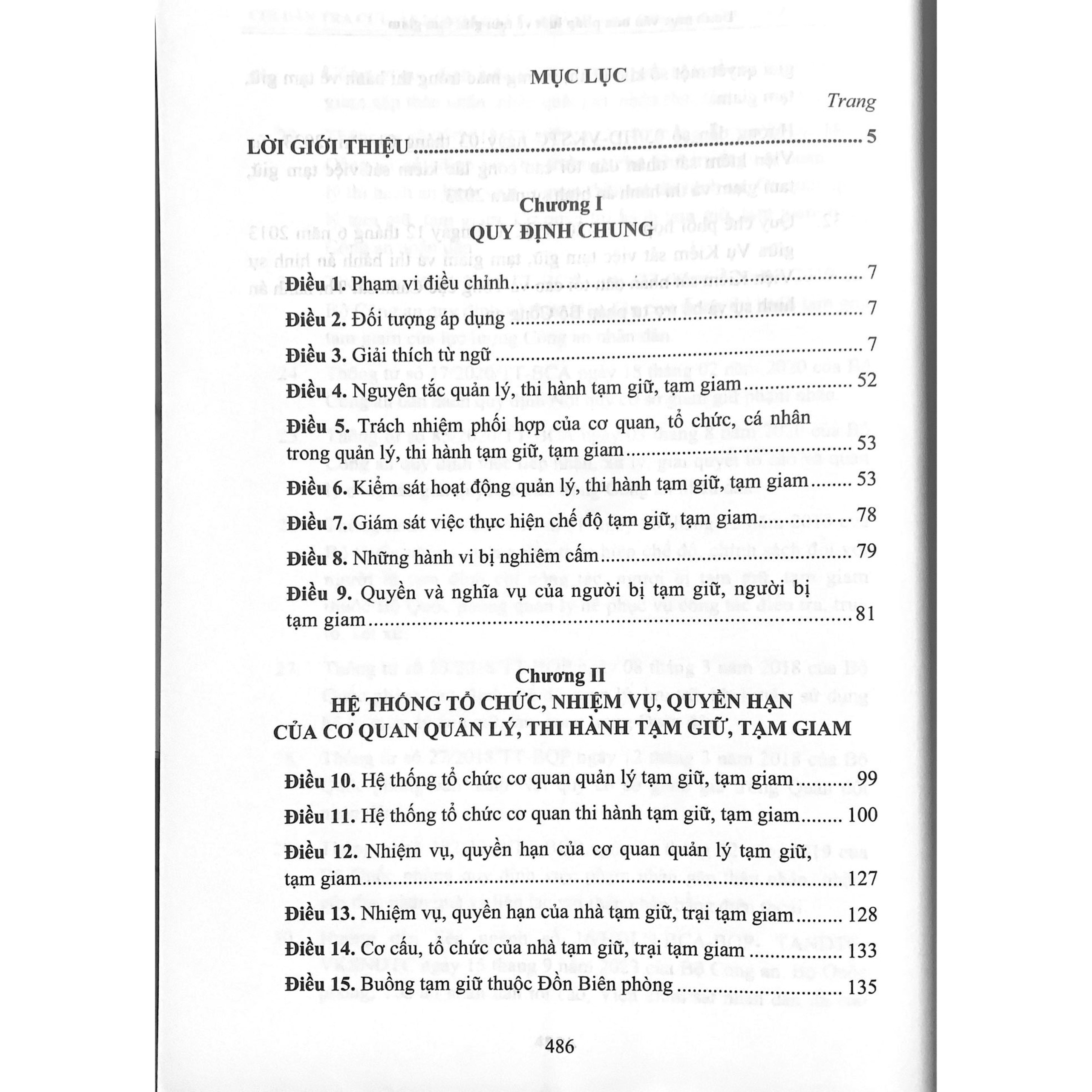 Để góp phần hiện thực hóa Hiến pháp năm 2013, Nhóm tác giả đã biên soạn cuốn "Chỉ dẫn tra cứu, áp dụng luật thi hành tạm giữ, tạm giam hiện hành góp phần thực thiện nguyên tắc hiến định "công nhận, tôn trọng, bảo vệ và bảo đảm quyền con người" ".Cuốn sách tập hợp đầy đủ văn bản pháp luật đang có hiệu lực về tạm giữ, tạm giam theo thủ tục tổ tụng hình sự với các nhóm nội dung liên quan đến từng chương, mục, điều, khoản, điểm của Luật Thi hành tạm giữ, tạm giam hiện hành. Vì vậy, cuốn sách vừa có ý nghĩa lý luận, ý nghĩa lịch sử, vừa có ý nghĩa thực tiễn sâu sắc và bố ích.