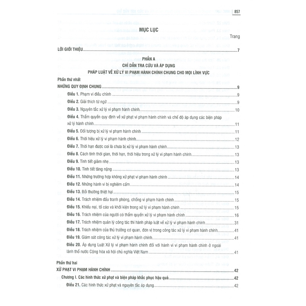 Để tiến tra cứu và áp dụng pháp luật về xử lý vi phạm hành chính, nhóm tác giả đã biên soạn bộ sách “Chỉ dẫn tra cứu và áp dụng pháp luật về xử lý vi phạm hành chính (được sửa đổi, bổ sung năm 2020)”, ngoài lời giới thiệu, danh mục văn bản chỉ dẫn tra cứu và áp dụng pháp luật về xử lý vi phạm hành chính, bộ sách gồm 02 phần và được chia làm 02 quyển: