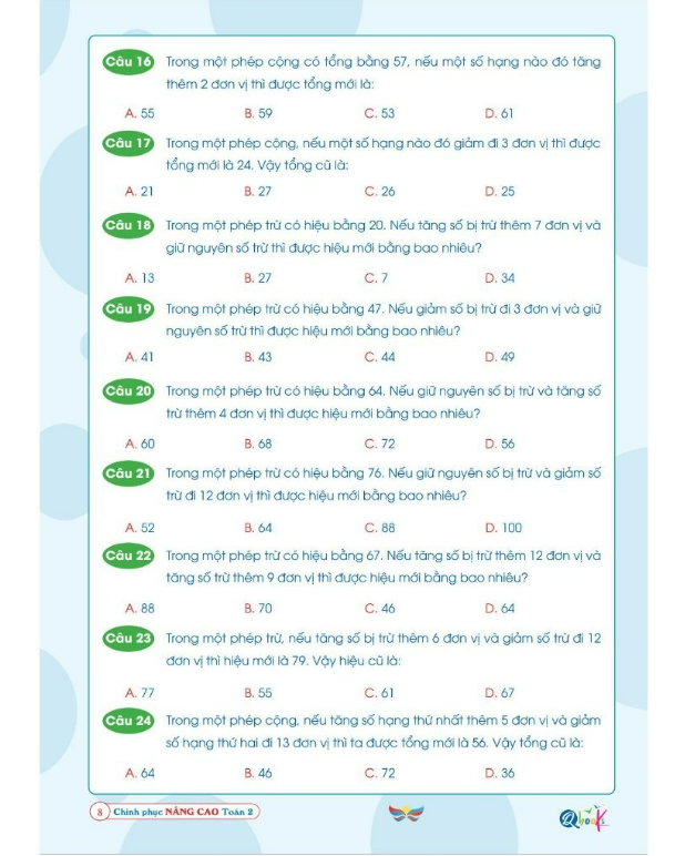 2056. Toán nâng cao lớp 2 _PHÉP CÔNG-PHÉP TRỪ (P2) Kiến thức cơ bản quan trọng cần nắm vững