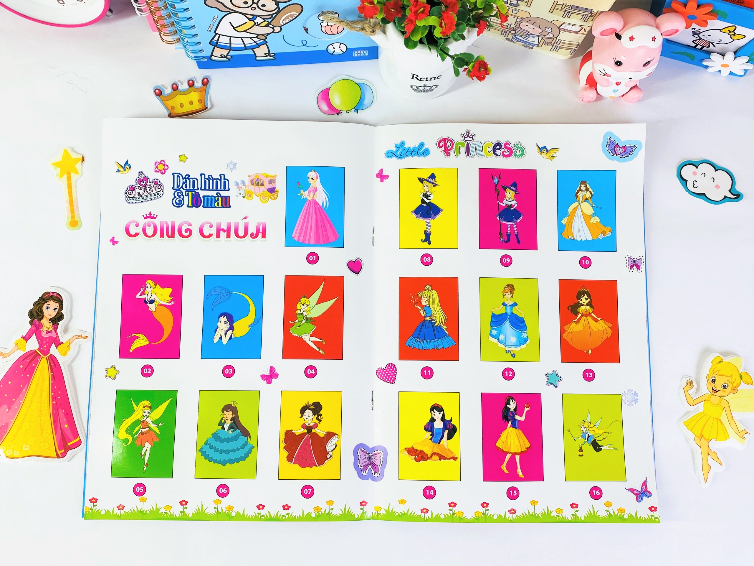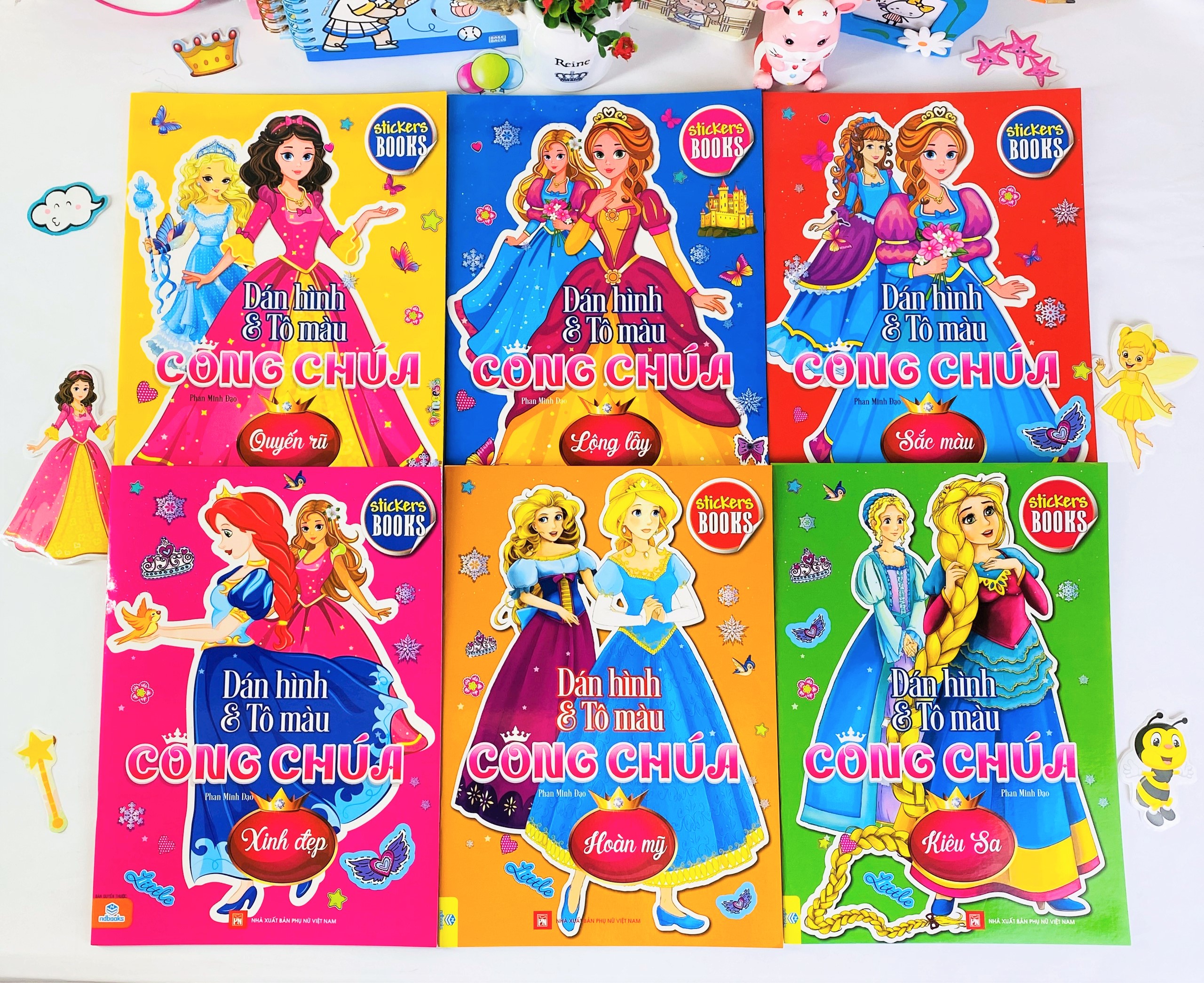 ✨Sách - Combo 6 cuốn Dán hình và tô màu Công Chúa - ndbooks