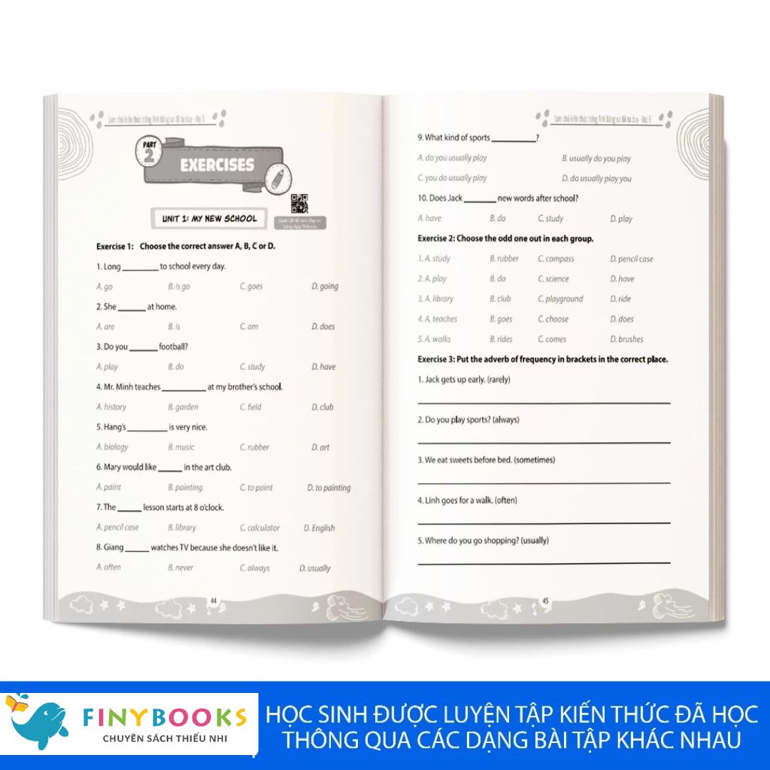 Trong phần 3, các em sẽ có cơ hội tự kiểm tra, đánh giá trình độ tiếng Anh của mình với 20 bài test từ dễ đến khó. Các bài test này được thiết kế như những bài kiểm tra trên lớp nhằm giúp các em luyện tập sâu hơn về những kiến thức mình đã học.