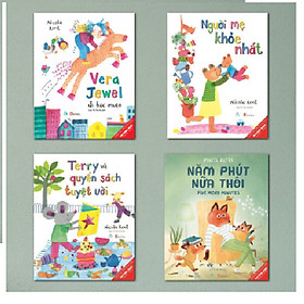 Bốn cuốn sách tranh song ngữ giúp trẻ vun đắp trái tim đầy ắp tình yêu thương 1. VERA JEWEL ĐI HỌC MUỘN – ĐẾN TRƯỜNG ĐÚNG GIỜ SAO LẠI KHÓ VẬY NHỈ? Vera là một cô bé nhỏ nhắn có mái tóc xoăn màu xanh nước biển, mặc áo sọc hồng, đi giày màu vàng và đeo chiếc balo cũng màu vàng nốt. Vera là một cô bé rất tự lập! Mỗi ngày Vera đều tự mình đi đến trường. Thế mà buồn thay, Vera không thể nào đi học đúng giờ được. Một sự cố bất ngờ xảy ra vào sáng thứ Hai đã khiến cho quãng đường đến trường của cô bé thật là khó khăn. Cuối cùng Vera có thể đến trường đúng giờ hay không? Các bạn nhỏ sẽ tìm thấy câu trả lời trong cuốn sách tranh song ngữ “Vera đi học muộn”. Qua cuốn sách tranh ngộ nghĩnh này, bé sẽ cùng cô bạn Vera trải qua bao nhiêu trắc trở để đến trường. Dù khó khăn như vậy nhưng Vera vẫn tiếp tục cố gắng. Bé sẽ được người bạn mới này truyền cảm hứng và từ đó học được rằng, nếu không ngừng nỗ lực thì sẽ đạt được thành công. Và có thể sau khi đọc cuốn sách tranh “Vera đi học muộn”, các bạn nhỏ sẽ thấy, đến trường thật là vui! 2. NGƯỜI MẸ KHỎE NHẤT – MẸ LÀ NGƯỜI CÓ THỂ NÂNG CẢ THẾ GIỚI Ai cũng biết mẹ của gấu nhỏ là người mẹ khỏe nhất trên thế giới! Túi của mẹ là nơi cất giấu kho báu của gấu nhỏ, khi là chiếc lá vàng, khi là quả thông khô, hạt dẻ, vỏ ốc và vô vàn những thứ hay ho khác. Dù cho đó là bất cứ thứ gì, miễn là gấu nhỏ thích, mẹ sẽ luôn cầm cho cậu bé. Nhưng đó chưa phải là điểm khiến gấu mẹ trở thành người mẹ khỏe nhất. Các bé hãy khám phá năng lượng sức mạnh của mẹ qua cuốn sách tranh song ngữ “Người mẹ khỏe nhất” của tác giả Nicola Kent nhé! Cuốn sách tranh song ngữ ấm áp này sẽ giúp bé nhận ra những người mẹ “khỏe” đến nhường nào. Dù chẳng cần đến “super power” mẹ vẫn có thể làm được những việc vô cùng ấn tượng. Mẹ chính là “siêu nhân” của con. Nhưng “siêu nhân” cũng sẽ có lúc bị tiêu hao năng lượng, đến lúc đó mẹ sẽ cần con ở bên chia sẻ. Cuốn sách ý nghĩa này sẽ giúp con nhận ra, khi con có thể giúp được mẹ, con cũng đang trở nên siêu khỏe! 3. TERRY VÀ QUYỂN SÁCH TUYỆT VỜI – QUYỂN SÁCH NÀY SẼ TUYỆT HƠN NỮA NẾU ĐƯỢC ĐỌC CÙNG BẠN BÈ Terry và Sue là những người bạn tốt nhất của nhau. Mỗi dịp sinh nhật, hai bạn đều tặng nhau một quả bóng. Đối với Terry và Sue, bóng là đồ chơi thú vị nhất cho đến khi SÁCH xuất hiện. Quyển sách đã đến thật bất ngờ vào ngày sinh nhật của Terry và chiếm lấy mọi sự chú ý của hai bạn. Trong cuốn sách có gì mà hấp dẫn vậy nhỉ? Hấp dẫn đến nỗi một khi người ta đọc là không thể nào dừng lại được. Cuốn sách có thể khiến cho hai bạn khóc hu hu rồi lại cười ha ha sảng khoái. Sách không thể nảy, không thể đánh bổng, không thể ném lên cao như bóng nhưng sách lại mang đến điều kỳ diệu hơn thế nhiều. Sách tuyệt vời như vậy nhưng có vẻ Terry và Sue lại không được vui vẻ như các bạn ấy nghĩ. Chuyện gì đã xảy ra? Tại sao Terry và Sue lại không vui vậy nhỉ? Các bạn nhỏ hay theo dõi thật kỹ câu chuyện để khám phá xem những sự kiện nào đã diễn ra kể từ khi hai người bạn đọc cuốn sách nhé! “Terry và cuốn sách tuyệt vời” sẽ kể cho bé một câu chuyện thật gần gũi, thân thuộc của mọi người bạn trên đời. Cuốn sách là một cuộc hành trình tìm thấy điều quan trọng nhất của tình bạn, đó là việc chia sẻ và cùng nhau thực hiện những niềm vui trong cuộc sống. Bé sẽ nhận ra đồ chơi có vui đến nhường nào thì người bạn tốt của mình vẫn là điều tuyệt vời nhất. Và niềm vui sẽ trở nên hoàn hảo hơn nữa khi bạn bè chơi cùng nhau. 4. NĂM PHÚT NỮA THÔI – TƯỞNG KHÔNG DÀI MÀ DÀI KHÔNG TƯỞNG Thời gian là một thứ lạ lùng. Khi thì rất nhanh, khi thì chậm, khi thì rất chậậậậậm. Thời gian của người lớn và các bạn nhỏ cũng khác nhau nữa. Các bạn nhỏ đã bao giờ gặp phải trường hợp bố mẹ vội vàng nhắc nhở “Nhanh lên con, sắp muộn học rồi!”, nhưng bản thân mình lại thấy “Con còn nhiều thời gian lắm, đủ để đọc hết một cuốn sách cơ” chưa? Gia đình bạn cáo cũng giống y như vậy, cách tính thời gian của cáo nhỏ và bố rất khác nhau. Vậy thì cách tính của ai mới là chính xác nhất nhỉ? Cáo nhỏ nghĩ rằng những gì bạn ấy biết về thời gian còn nhiều hơn cả bố. Bố của cáo nhỏ nghĩ rằng năm phút không dài lắm, nhưng điều đó có đúng không nhỉ? “Năm phút nữa thôi” sẽ mang đến cho các bạn nhỏ những giờ phút vui nhộn cùng gia đình nhà cáo. Các bạn cũng sẽ biết được rằng thời gian ở những thời điểm khác nhau, đối với những người khác nhau cũng sẽ khác nhau đấy. Hãy cùng đón chờ những điều thú vị trong cuốn sách tranh song ngữ “Năm phút nữa thôi” nhé!