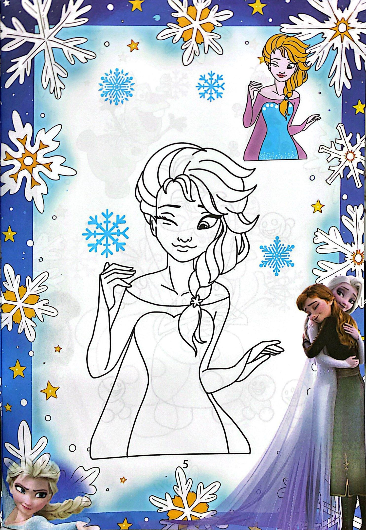 Sẽ hòa m.ình vào những điệu nhảy uyển chuyển của Elsa trong không gian băng tuyết lấp lánh. Những trang tô màu rực rỡ sẽ giúp bé thư giãn, tăng khả năng tập trung và sự khéo léo.