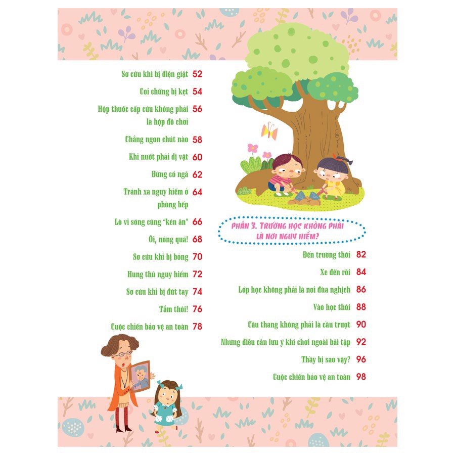 Sách: Rèn kĩ năng an toàn và tự vệ cho trẻ Hằng ngày, trẻ em luôn được cha mẹ và người thân trong gia đình quan tâm, chăm sóc, yêu thương và bảo vệ, cho nên hầu như không gặp bất cứ nguy hiểm gì. Tuy nhiên, dù trẻ ở nhà hay ở trường, vui chơi bên ngoài hay trên đường về nhà, đều luôn tiềm ẩn rất nhiều nguy hiểm. Chính vì vậy, cha mẹ nên trau dồi các kĩ năng an toàn cho trẻ ngay từ khi còn nhỏ, để trẻ có thể tự bảo vệ bản thân khi cần thiết. Để trẻ biết cách tự bảo vệ mình, khi gặp nguy hiểm có thể tự cứu nguy, chúng tôi đã biên soạn cuốn sách này, hi vọng cha mẹ có thể cùng đọc và thảo luận với con. Cha mẹ sẽ cảm thấy an tâm hơn khi cùng trẻ đọc hết cuốn sách này!