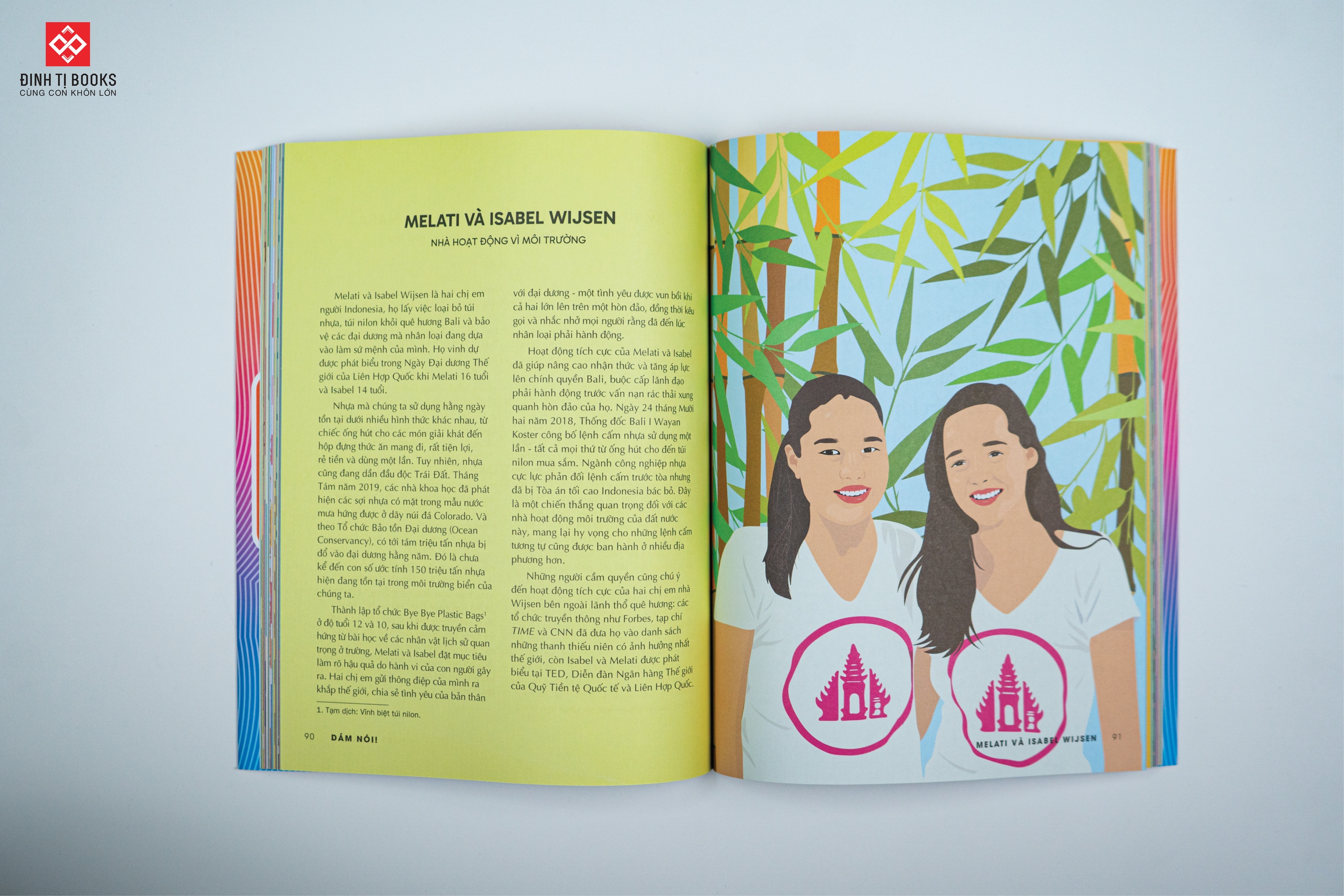 Những cái tên tiêu biểu: Cuốn sách giới thiệu các cá nhân như Greta Thunberg – nhà hoạt động vì biến đổi khí hậu, Malala Yousafzai – người nhận giải Nobel vì giáo dục,