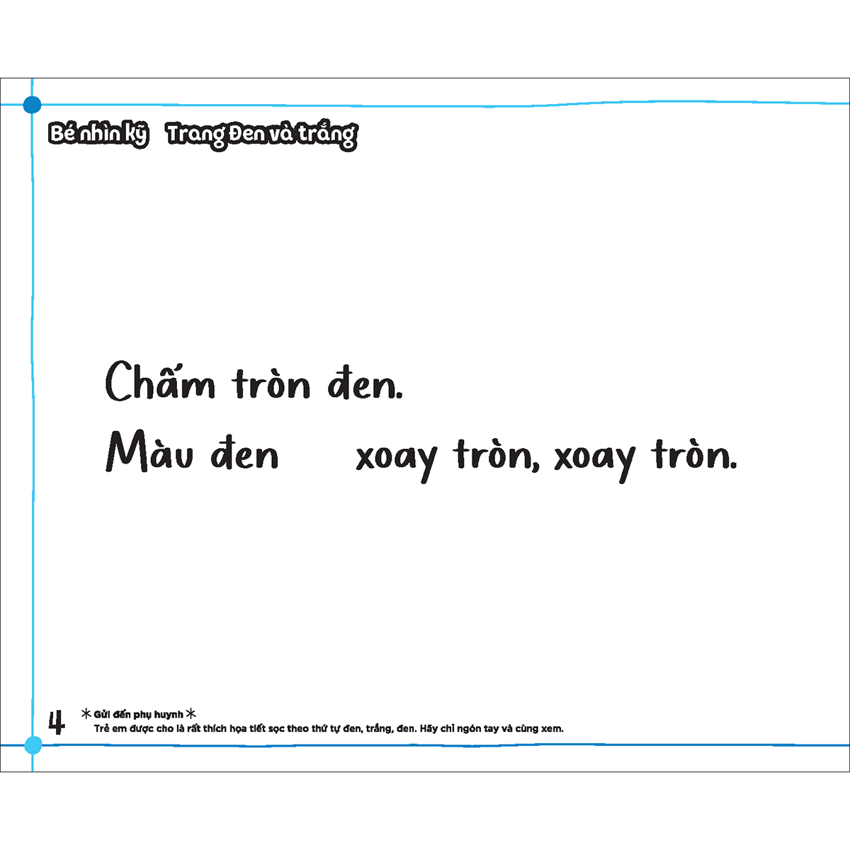 “Sách dành cho bé 0 tuổi - Bé cùng vui chơi luyện tập”  có thiết kế phối màu tương phản mạnh mẽ với các trò chơi “khuôn mặt'', từ tượng thanh, và “Ú, òa!” mà bé yêu thích. Quyển sách này hướng đến việc hình thành mối quan hệ gia đình gắn bó cho trẻ ngay trong giai đoạn 0 tuổi cực kỳ quan trọng, bằng việc tạo ra thời gian tương tác cho các thành viên trong gia đình.