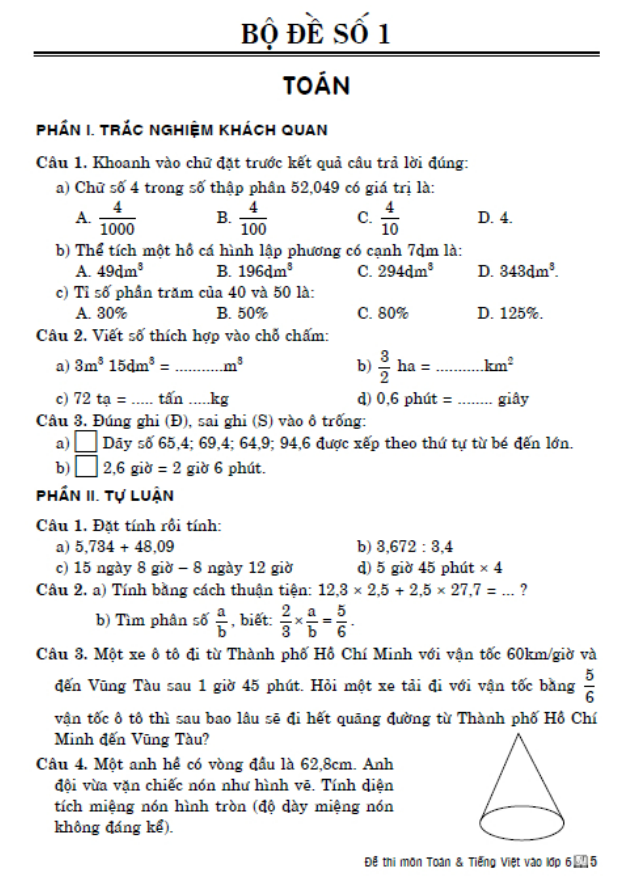 ✨Sách - đề thi môn toán tiếng việt dùng cho học sinh lớp 5 thi vào lớp 6 (dùng chung cho các bộ sgk hiện hành)