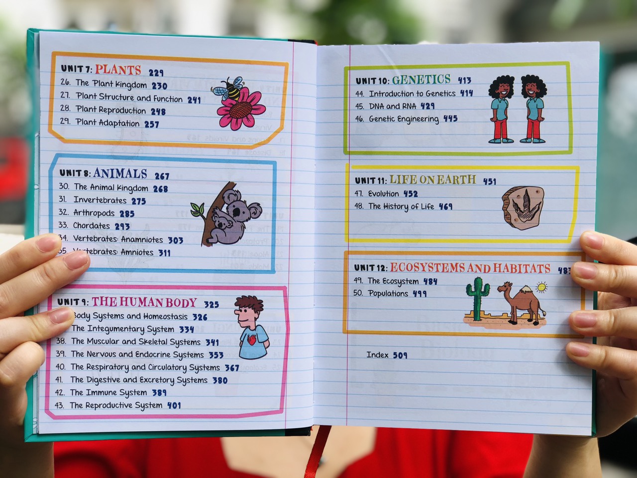 Mua tại TiktokEVERYTHING YOU NEED TO ACE BIOLOGY BIG FAT NOTEBOOKS ( SỔ TAY SINH HỌC ) - HIỆU SÁCH GENBOOKS ( SÁCH TIẾNG ANH, TỔNG HỢP KIẾN THỨC SINH HỌC TỪ LỚP 8 ĐẾN LỚP 12 ) Sổ tay Sinh học qua 12 chương lớn bóc tách thành 50 chủ đề chi tiết: