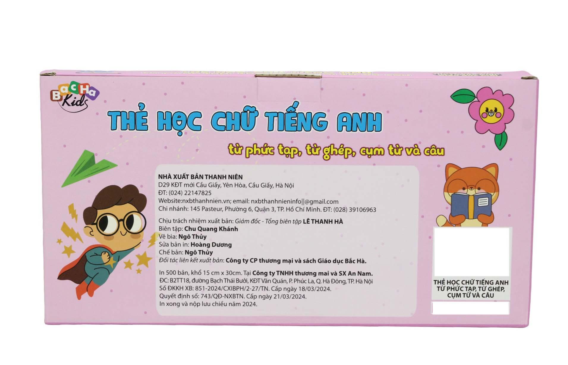 Mua tại TiktokFlash Card Tiếng Anh - Từ Phức Tạp, Từ Ghép, Cụm Từ Và Câu Flashcard Dạy Trẻ Theo Phương Pháp Glenn Doman giúp bé tiếp cận tiếng Anh từ nhỏ, nhận biết và ghi nhớ những từ ngữ từ đơn giản đến phức tạp theo phương pháp Glenn Doman. Bộ thẻ là tập hợp những từ phức tạp, từ ghép, cụm từ và câu trong tiếng Anh với các chủ đề: Số đếm, thời gian, đồ vật, thành phần ngôi nhà... Flashcard được in trên chất liệu giấy ivory dày dặn, có độ cứng phù hợp cho tráo thẻ. Bộ gồm 102 thẻ chữ in 2 mặt (mặt trước màu xanh, mặt sau màu đen) và hướng dẫn sử dụng. Toàn bộ được đựng trong hộp sang trọng và tiện cho việc cất trữ.