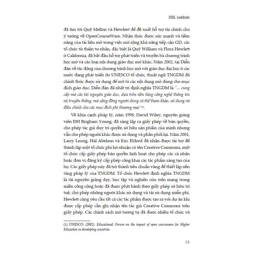 Cuốn sách này gồm hai chương lớn, tương ứng với hai nội dung là GIÁO DỤC MỞ và KHOA HỌC MỞ, được biên soạn dưới dạng cẩm nang hướng dẫn dành cho giảng viên, giáo viên, nhà nghiên cứu, học viên cao học, nghiên cứu sinh và sinh viên. Tuy nhiên, cuốn sách này cũng phù hợp với bất kỳ ai quan tâm đến chủ đề của nó một cách bài bản, nghiêm túc.