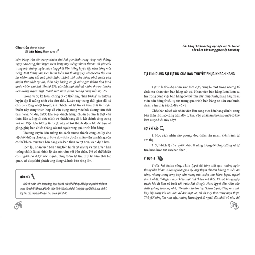 Giao Tiếp Chuyên Nghiệp Để Bán Hàng Thành Công Sản phẩm là sinh mạng thì bán hàng chính là linh hồn của nó. Để sản phẩm của bạn trở nên nổi bật và có đủ khả năng cạnh tranh trong thị trường hiện nay thì bạn cần phải khiến sản phẩm đó trở nên sinh động và cuốn hút với công chúng. Nói cách khác, bạn cần phải sử dụng nghệ thuật ngôn từ của bản thân để thuyết phục khách hàng lựa chọn sản phẩm của mình. Tài ăn nói - tổ chất mà bất kỳ nhân viên bán hàng nào cũng cần có Khả năng giao tiếp là yếu tố quan trọng nhất với mọi nhân viên bán hàng. Vì vậy, nếu bạn không có đủ sự tự tin, bình tĩnh và thoải mái khi giao tiếp với khách hàng, bạn sẽ không bao giờ có thể thành công trong công việc này. Tuy nhiên, ở chiều ngược lại, nếu bạn cứ liên tục tìm cách tiếp cận và thao thao bất tuyệt giới thiệu về sản phẩm thì cái bạn nhận được không phải gia tăng doanh số mà là sự khó chịu đến từ những vị khách hàng. Nghệ thuật giao tiếp trong “Giao tiếp chuyên nghiệp để bán hàng thành công" Nội dung cuốn sách được chia làm bảy chương, giải đáp tỉ mì từng giai đoạn trong quá trình bán hàng bao gồm: yếu tố cơ bản trong giao tiếp bán hàng, tài ăn nói để khai thác khách hàng hữu hiệu, kỹ xảo nói chuyện qua điện thoại, kĩ xảo thực chiến khi tiếp cận khách hàng, bồi dưỡng phẩm chất đạo đức bản thân, phương pháp khiến khách hàng nhanh chóng đồng thuận tiến hành giao dịch và các vấn đề phía sau mỗi đơn hàng… Những nội dung được giải đáp trong cuốn sách sẽ hỗ trợ bạn trong quá trình rèn luyện tài ăn nói xuất sắc. Chỉ như vậy, bạn mới có đủ sự tinh tế, nhạy bén để phát hiện, khai thác thậm chí là sáng tạo ra những nhu cầu của khách hàng, nhờ vậy, bạn có thể lựa lời đề cập đến những vấn đề mà khách hàng muốn nghe, thông tin họ muốn tìm hiểu, khiến họ trở nên hứng thú với sản phẩm và đơn hàng giao dịch cũng sẽ thuận lợi đến tay. Thêm vào đó, cuốn sách lựa chọn hướng tiếp cận khá thoải mái và có đôi phần hài hước. Do đó, bạn sẽ có cảm giác thoải mái, không bị quá nặng nề triết lý nhưng vẫn đảm bảo lượng kiến thức quan trọng mà bạn mong muốn. Phương pháp phân tích - lý giải tình huống trong cuốn sách Một trong những lý do khiến bạn có thể dễ dàng nắm rõ và áp dụng những kỹ năng được đề cập ở cuốn sách“Giao tiếp chuyên nghiệp để bán hàng thành công” nằm ở phương pháp phân tích và lý giải vấn đề của tác giả. Từ chủ đề chung nhất về một giai đoạn cụ thể trong bán hàng, cuốn sách sẽ đưa ra các tình huống ví dụ rất thực tế trong việc trò chuyện với người mua hàng. Tiếp đó, nội dung đi sâu phân tích lý do khiến cho cách xử lý của người nhân viên thành công hoặc thất bại. Sau cùng là phần kết luận ngắn gọn, giúp bạn dễ dàng ghi nhớ các tip đã được đề cập và hướng dẫn cụ thể trong từng chương, từng phần. Nếu bạn đang muốn thay đổi bản