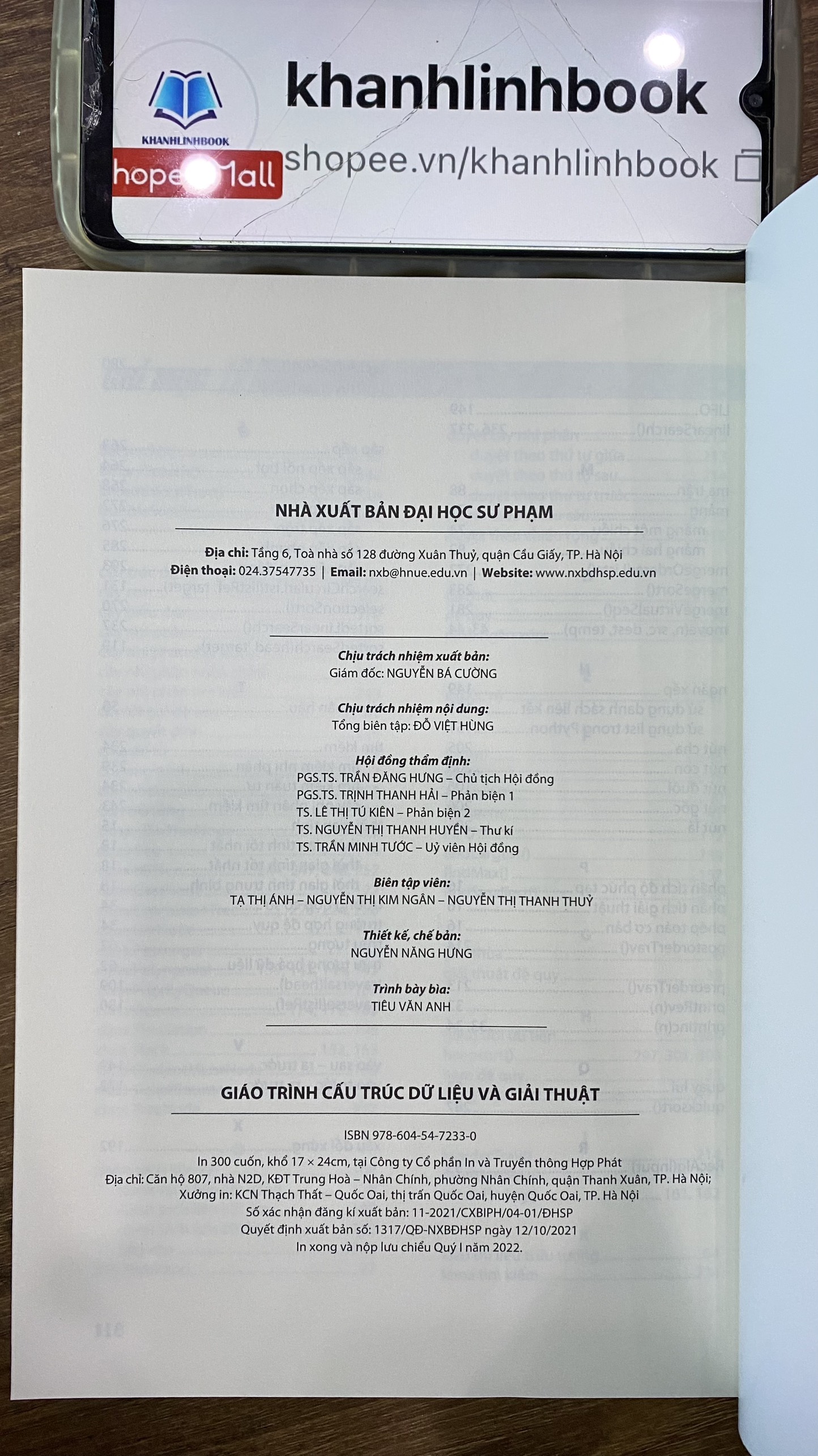 Cuốn sách này được biên soạn làm giáo trình giảng dạy một môn học cơ sở trong chương trình đào tạo cử nhân Sư phạm Tin học và Công nghệ thông tin. Độc giả sẽ được làm quen với một số kiến thức cơ bản về cấu trúc dữ liệu và các giải thuật có liên quan. Từ đó tạo điều kiện cho việc nâng cao thêm về kĩ thuật lập trình, phương pháp giải các bài toán để có khả năng đi sâu thêm vào các môn học chuyên ngành như Cơ sở dữ liệu, Trí tuệ nhân tạo,