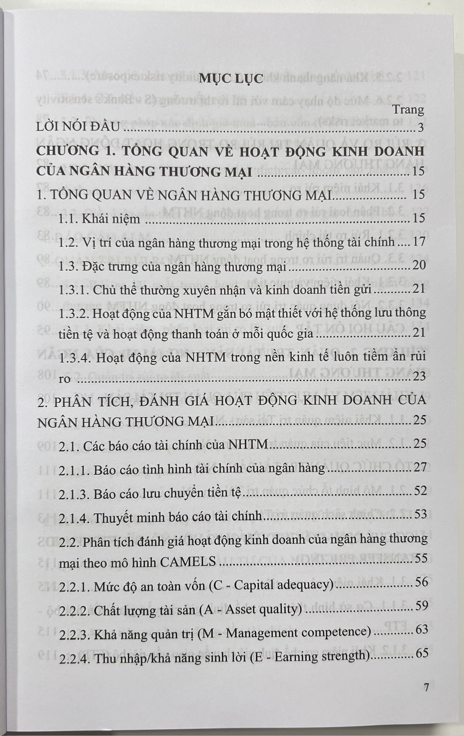 Chương 1: Tổng quan về hoạt động kinh doanh của ngân hàng thương mại Chương này đề cập tới các vấn đề căn bản của hoạt động ngân hàng thương mại như khái niệm, vai trò của ngân hàng trong hệ thống tài chính, mô hình phân tích đánh giá hoạt động kinh doanh của ngân hàng thương mại, nội dung cơ bản của quản trị rủi ro trong hoạt động NHTM.