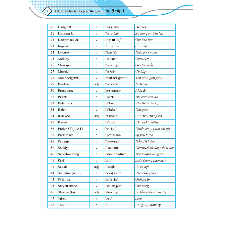 Bài tập bổ trợ và nâng cao Tiếng Anh được chia thành các đơn vị bài học bám sát chương trình mới nhất của Bộ Giáo dục và Đào tạo. Thông qua hệ thống các bài học với kiến thức bổ trợ nâng cao, cuốn sách hướng tới phát triển toàn diện kỹ năng ngôn ngữ cho các em học sinh. Đây không chỉ là tài liệu bổ trợ giúp các em củng cố kiến thức cơ bản sau các bài học trên lớp mà còn là công cụ hỗ trợ các em không ngừng mở rộng và nâng cao kiến thức. Bài tập bổ trợ và nâng cao Tiếng Anh được biên soạn với hệ thống bài tập vô cùng đa dạng. Mỗi đơn vị bài tập gồm 5 phần: I. Pronunciation (Phát âm Trọng âm) II. Vocabulary (Từ vựng): III. Grammar (Ngữ pháp ): IV. Reading (Kỹ năng đọc ) V. Writing (Kỹ năng viết) Sau mỗi đơn vị bài học là các đề kiểm tra 15 phút, kiểm tra giữa học kỳ và kiểm tra cuối học kỳ. Thông qua hệ thống đánh giá năng lực, các em có thể thử sức mình với hàng trăm câu hỏi bám sát đề trên lớp. Các bậc phụ huynh dễ dàng biết được sự tiến bộ của con em mình từng ngày