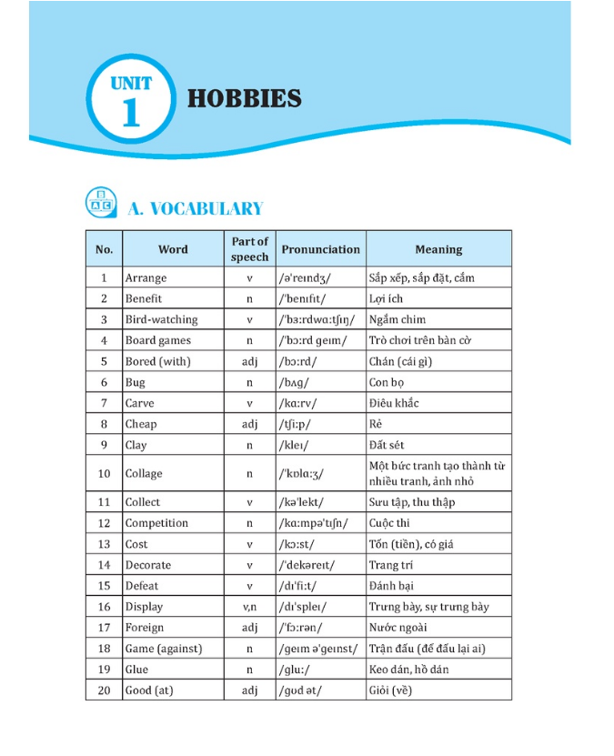 bài tập tiếng anh lớp 7 được biên soạn bám sát chương trình mới của Bộ Giáo dục & Đào tạo với các chủ điểm quen thuộc với học sinh lớp 7 như: MY NEW SCHOOL (Trường học mới của tôi); MY HOME (Gia đình tôi); MY FRIENDS (Các bạn tôi); MY NEIGHBOURHOOD (Hàng xóm của tôi); NATURAL WONDERS OF THE WORLD (Kỳ quan thiên nhiên thế giới); OURTETHOLIDAY (Ngày Tết của chúng tôi); TELEVISION (Truyền hình); SPORTS AND GAMES (Trò chơi và thể thao); CITIES OF THE WORLD (Các thành phố trên thế giới.