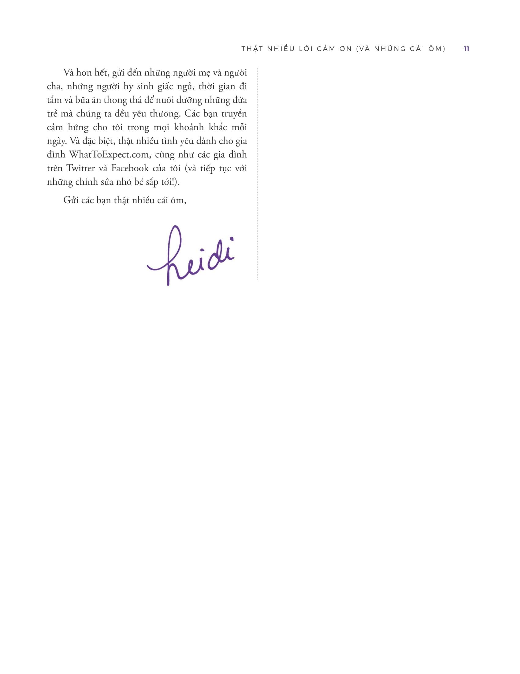 Heidi Murkoff được biết đến với cam kết nâng cao nhận thức và cung cấp thông tin cho các bậc cha mẹ, giúp họ tự tin và chuẩn bị tốt hơn cho hành trình làm cha mẹ.