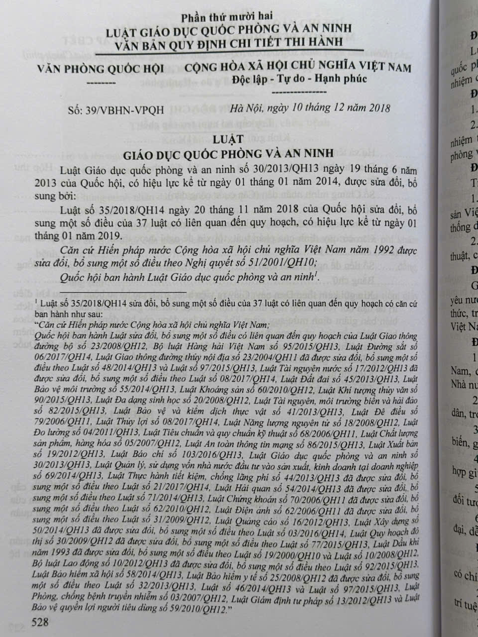 Phần thứ mười hai. LUẬT GIÁO DỤC QUỐC PHÒNG VÀ AN NINH – VĂN BẢN QUY ĐỊNH CHI TIẾT THI HÀNH