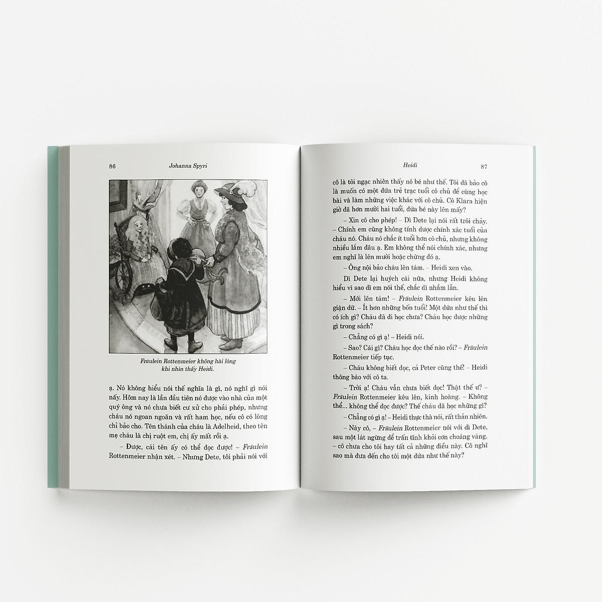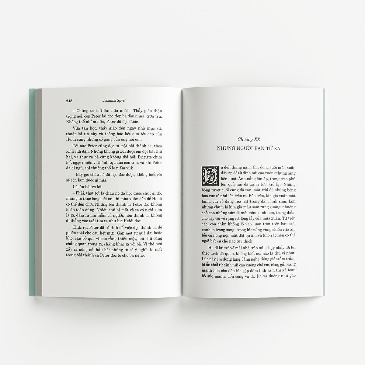Ra đời cách đây đã 130 năm, Heidi của nữ nhà văn Johanna Spyri - Thụy Sĩ được xem là một tác phẩm kinh điển dành cho thiếu nhi. Với văn phong giản dị, trong sáng, tác phẩm đem đến cho người đọc những bức tranh thiên nhiên thơ mộng, hùng vĩ của đất nước Thụy Sỹ, cùng những điều bí ẩn của tạo vật và tâm hồn con trẻ. Hơn thế nữa, tiểu thuyết này còn là bài ca về tình yêu cuộc sống, về tình cảm ấm áp giữa người và người.