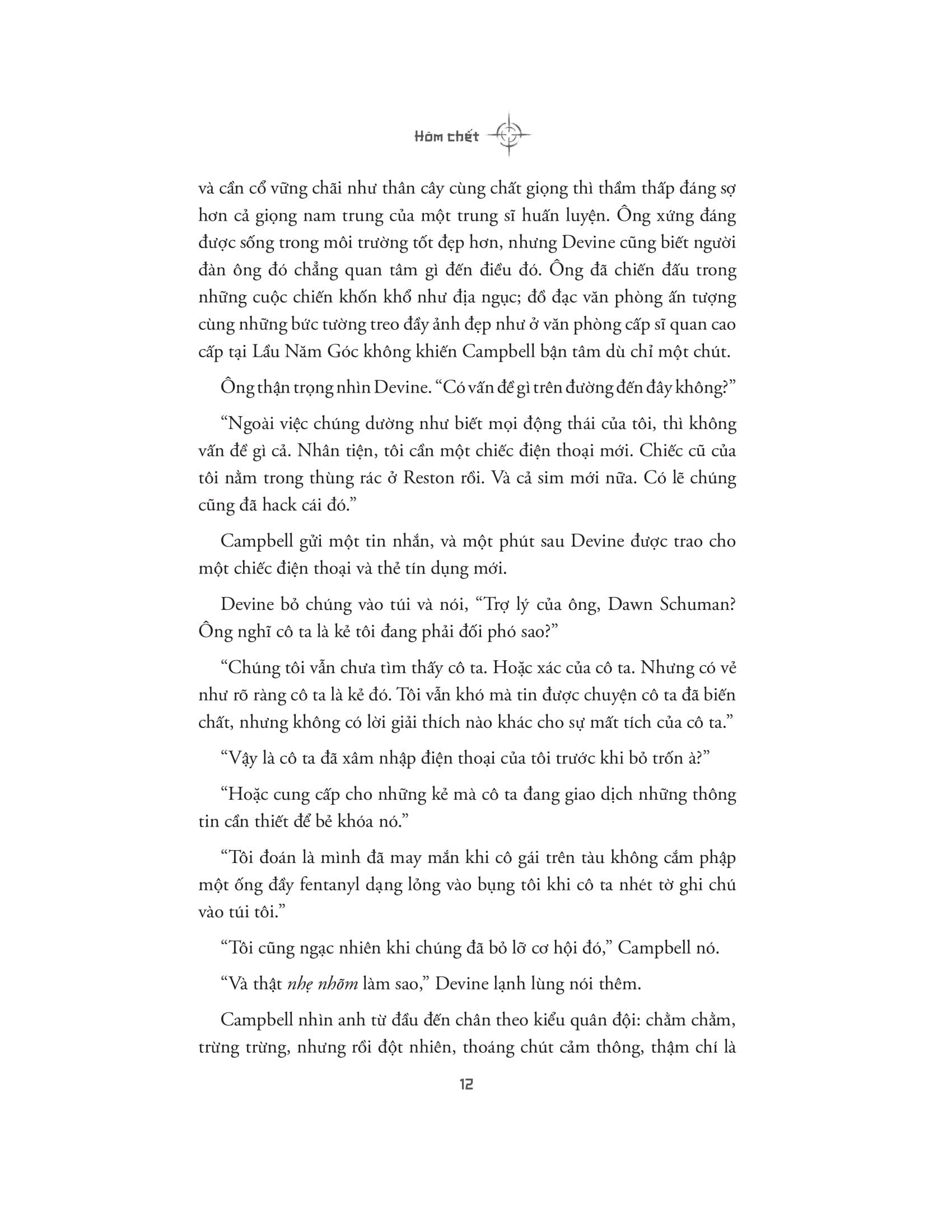 • Publishers Weekly không ngần ngại gọi đây là một cuốn tiểu thuyết giật gân “thú vị”, với cốt truyện phức tạp được cân bằng khéo léo bởi những pha hành động dồn dập.”