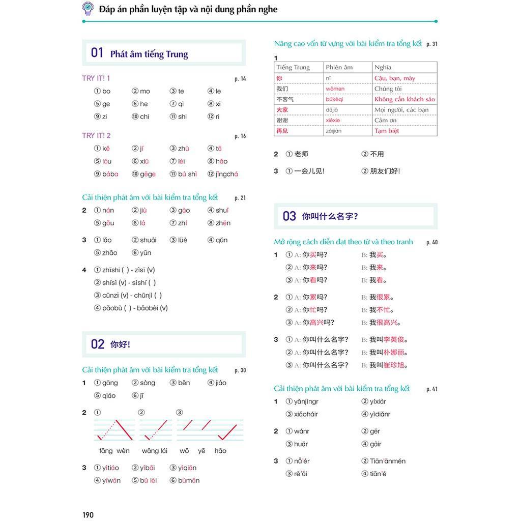 - Giải thích chi tiết, hướng dẫn tự học phát âm chuẩn Cuốn sách trình bày cụ thể và dễ hiểu cho người học từ quy tắc phiên âm Latinh đến hội thoại cơ bản và cách phát âm của từ. Cung cấp nhiều ví dụ đơn giản, đa dạng để người học luyện đọc và luyện nói. Bên cạnh đó, cuốn sách có rất nhiều vựng mới theo mỗi chủ đề.