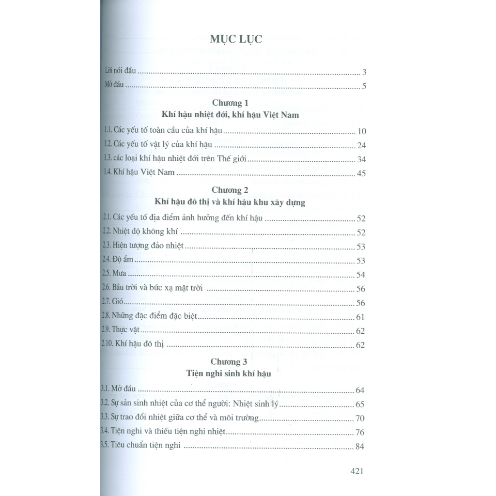 - Từ đó đề xuất các Chiến lược và Giải pháp thiết kế kiến trúc sinh khí hậu trong điều kiện khí hậu Việt Nam để tạo được môi trường tiện nghi trong nhà (Chương 5 & 6). Chương 7 giới thiệu một vài công trình nổi tiếng trên thế giới.