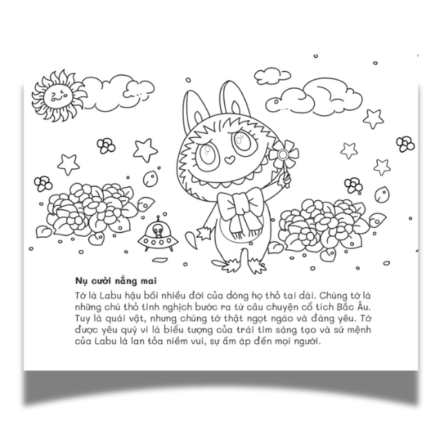 • Khám phá vương quốc: Qua các trang tô màu, trẻ em sẽ được đưa vào vương quốc kỳ diệu, nơi mà Labubu và các bạn của mình gặp gỡ những sinh vật thú vị và trải nghiệm nhiều cuộc phiêu lưu.