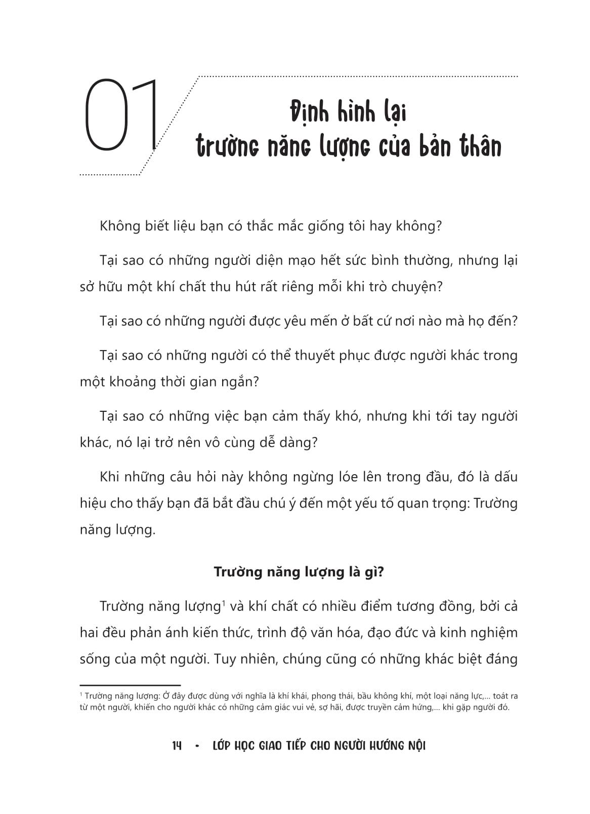 Mua tại TiktokLớp Học Giao Tiếp Cho Người Hướng Nội - Vượt Qua Định Kiến Bản Thân Để Tự Tin Thuyết Phục Đám Đông Ai cũng cho rằng, nhiều cơ hội “béo bở” chỉ rơi vào tay của những kẻ hướng ngoại khéo ăn khéo nói. Vậy nếu là người hướng nội, kiệm lời và thích lắng nghe, thì chúng ta phải chấp nhận vài sự lựa chọn kém hấp dẫn sao? Tin tốt là: Lớp học giao tiếp cho người hướng nội sẽ chứng minh cho bạn thấy điều ngược lại. Với các bài học mở khóa 1% tự tin của bản thân, nhảy qua “bẫy phụ thuộc” trong mọi cuộc trò chuyện, ghi điểm bằng lối “nói ít nhưng ấn tượng”... Bạn sẽ nắm được bí thuật giao tiếp để kết nối đám đông, thu hút lợi thế cho chính m.ình. Cuốn sách này là “cẩm nang” chi tiết giúp người hướng nội: