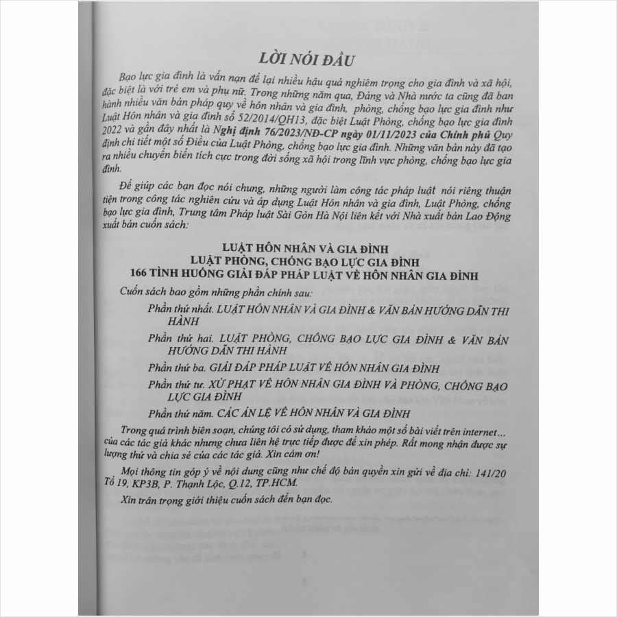 Sách Luật Hôn Nhân và Gia Đình - Luật Phòng, Chống Bạo Lực Gia Đình và 166 Tình Huống Giải Đáp Pháp Luật về Hôn Nhân Gia Đình