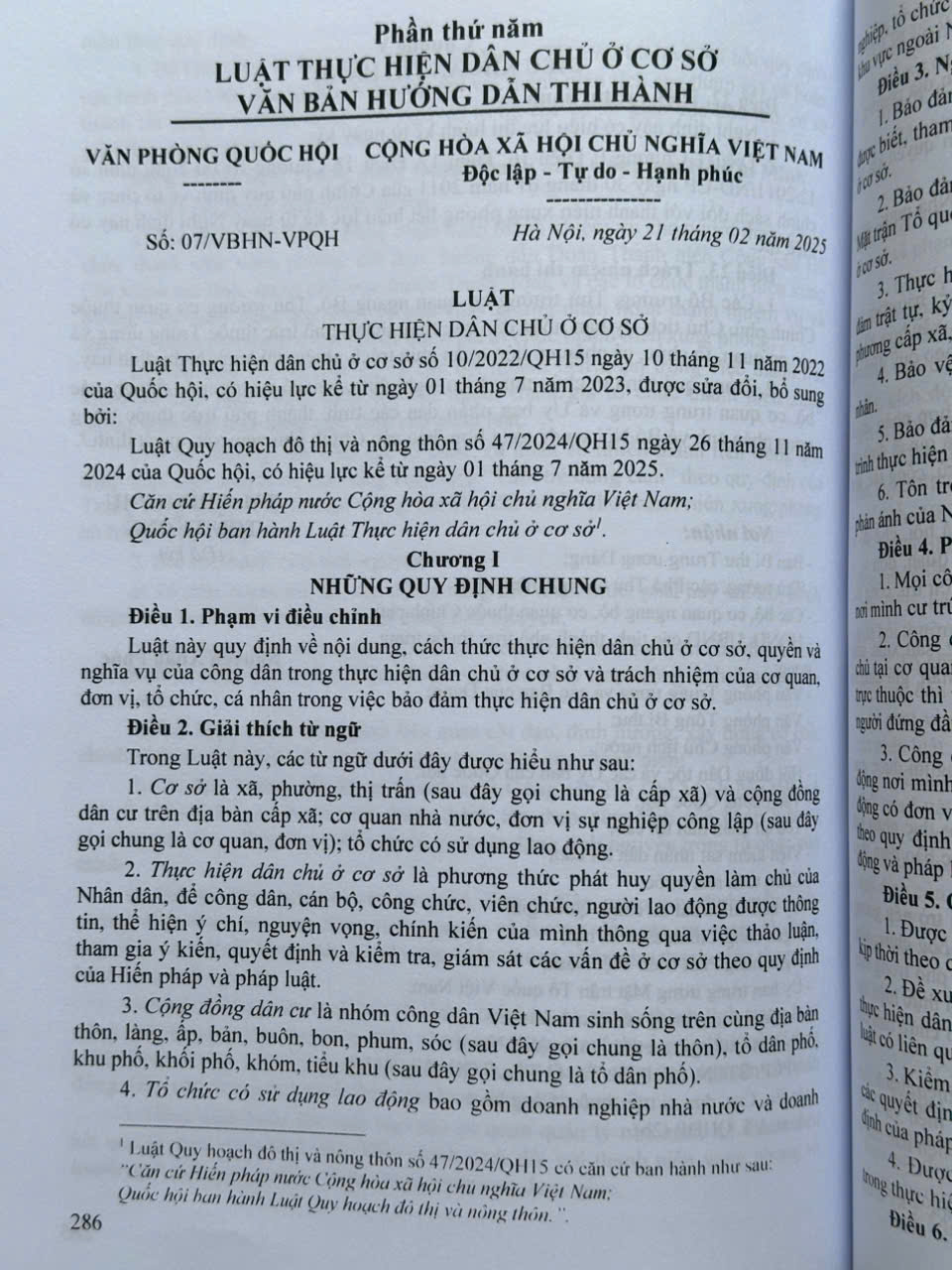 Phần thứ năm. LUẬT THỰC HIỆN DÂN CHỦ Ở CƠ SỞ VÀ VĂN BẢN HƯỚNG DẪN THI HÀNH.