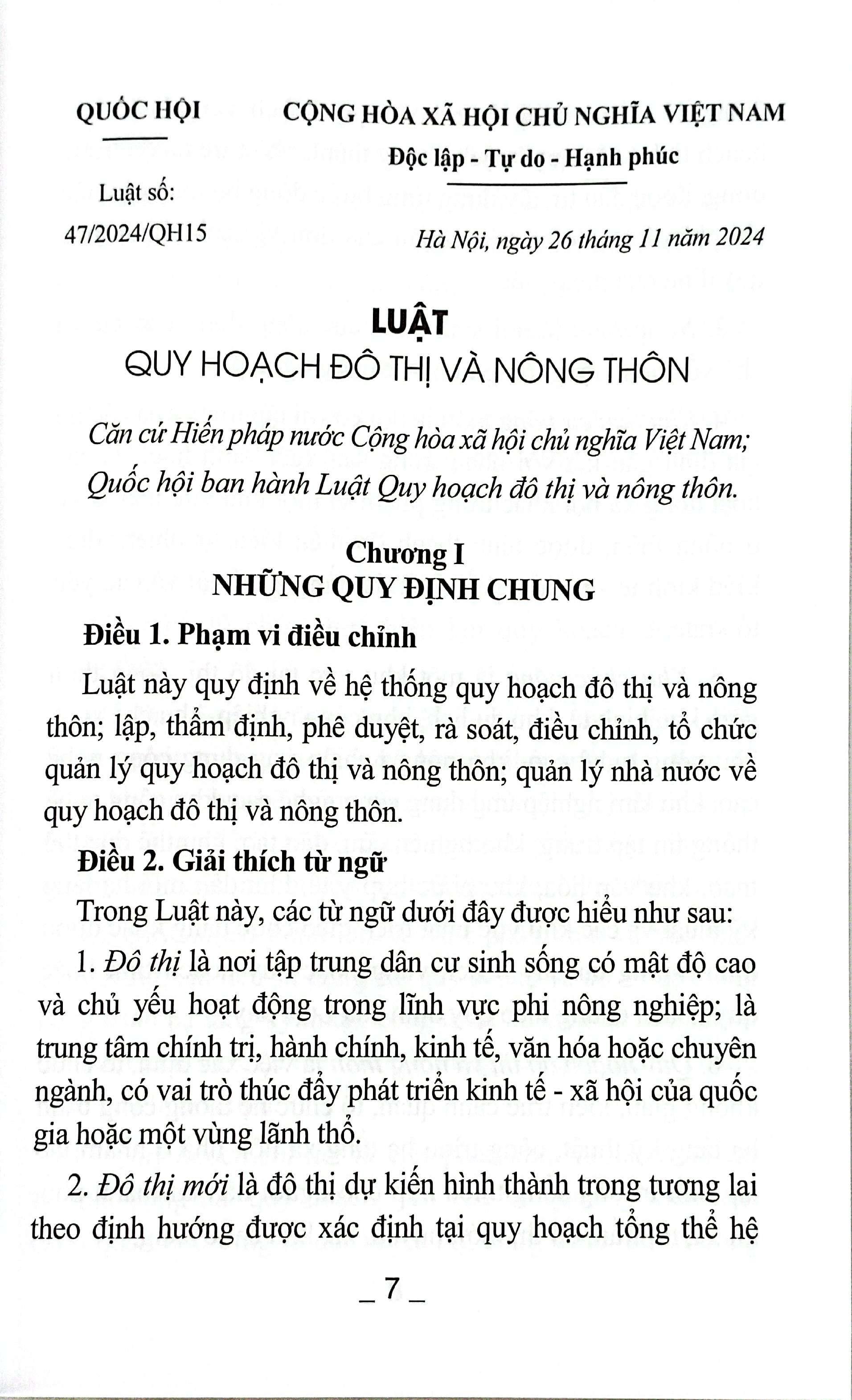 GIỌNG ĐỌC CHUẨN - MỤC 1- CHƯƠNG 2 - LUẬT QUY HOẠCH ĐÔ THỊ VÀ NÔNG THÔN 2024 47/2024/QH15