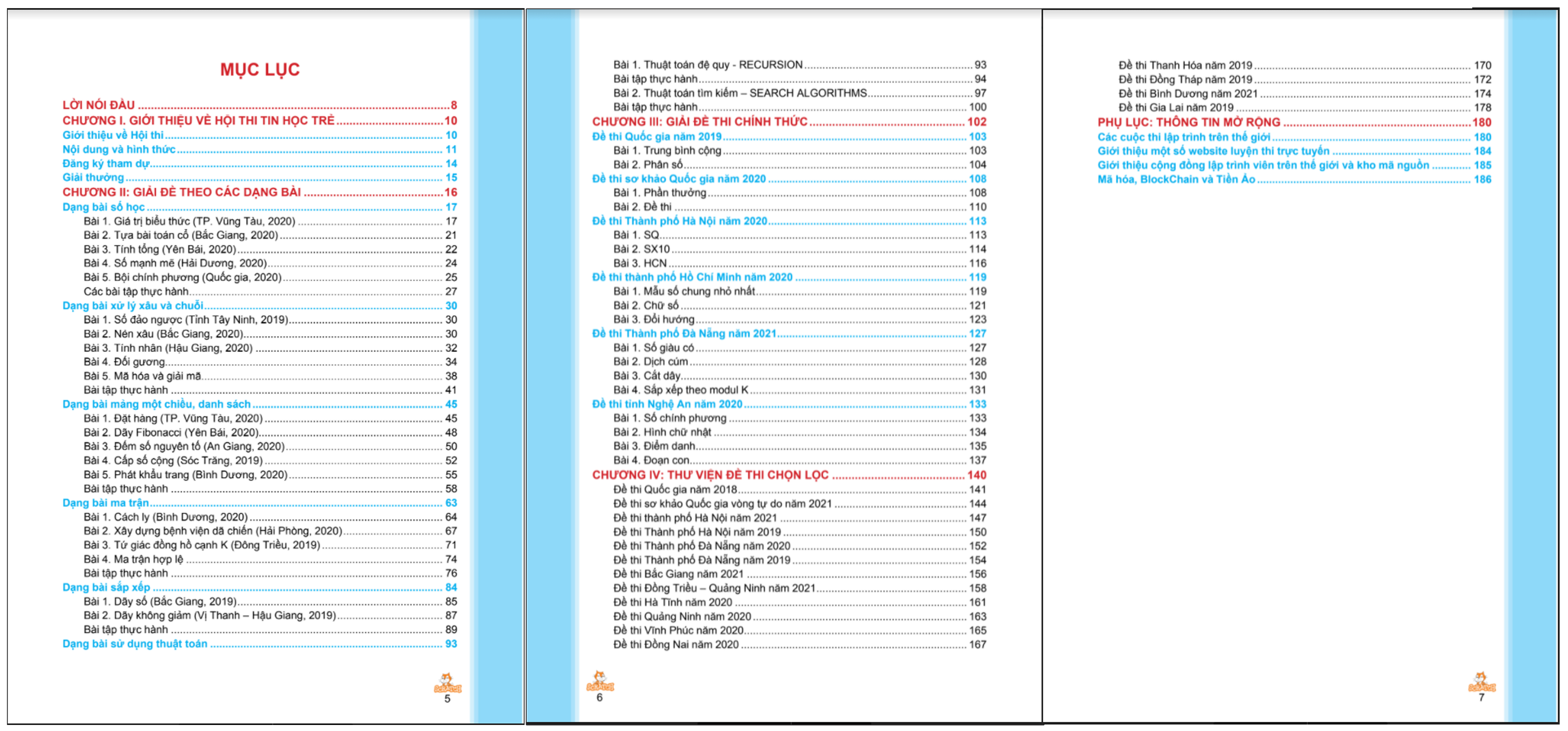 Chương 3: Hướng dẫn giải một số đề thi chính thức của Hội thi Tin học trẻ cấp Quốc gia và một số cuộc thi cấp tỉnh, thành phố tiêu biểu.