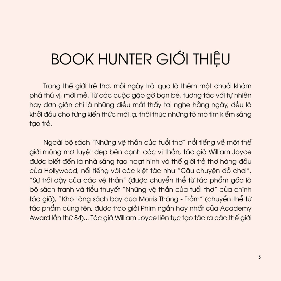 các bạn nhỏ. Chúng tôi trân trọng giới thiệu tới bạn đọc cuốn sách “Một ngày bên Wilbur Robinson” thuộc Tủ sách Buồm Trăng của Book Hunter, do Nguyệt Mỹ (10 tuổi) chuyển ngữ. Nguyệt Mỹ có thói quen đọc truyện cho hai em nhỏ nghe mỗi ngày và đặc biệt thích những tác phẩm của William Joyce, luôn muốn chia sẻ thế giới trong truyện thiếu nhi của William Joyce cho nhiều bạn đọc Việt Nam cùng biết.