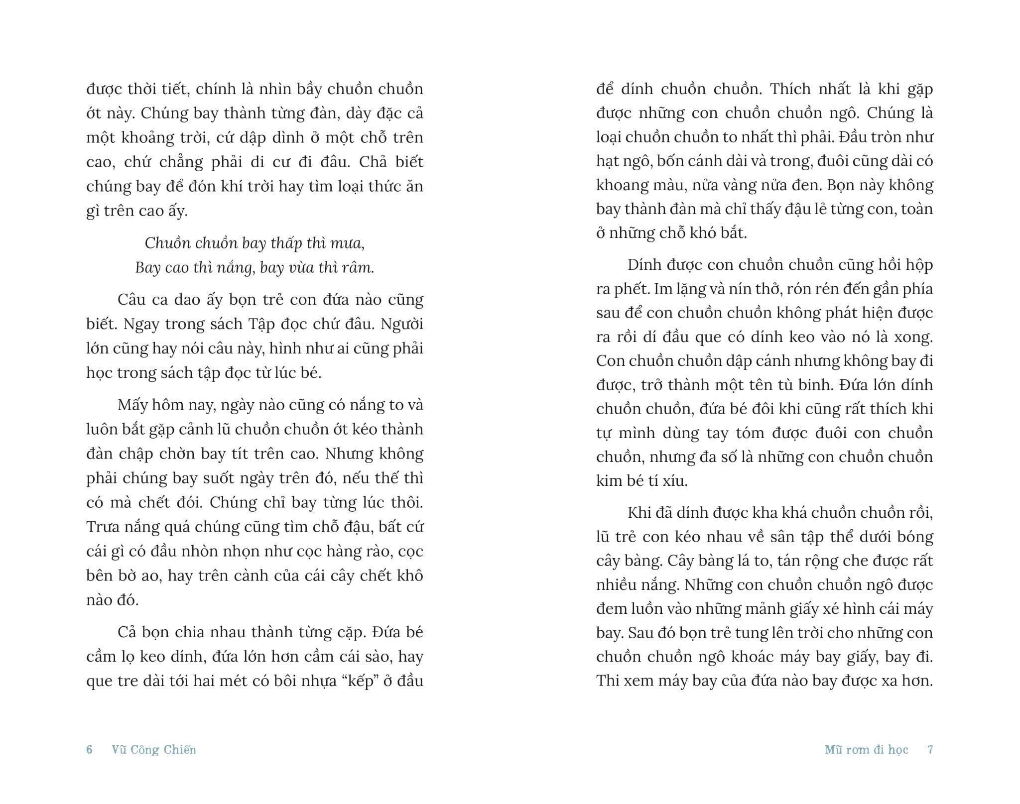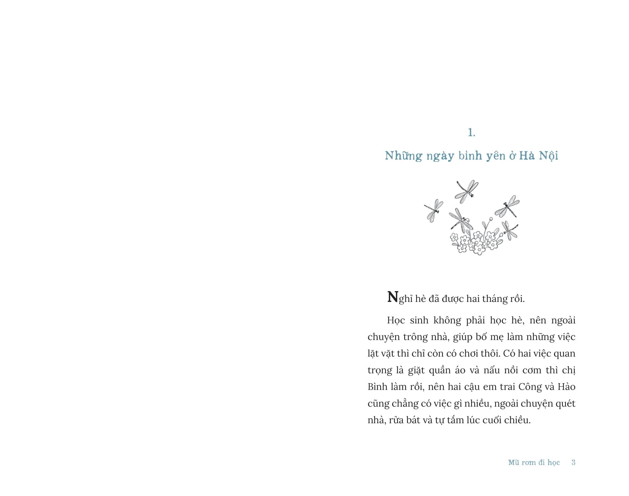 Mũ Rơm Đi Học Không đơn thuần là chuyện kể của cậu bé Hà Nội sơ tán về quê thời bom đạn, đây là những “trích lục” thuần khiết, hồn hậu về những sinh hoạt, trường lớp, tập tục, phong cảnh, đồ...