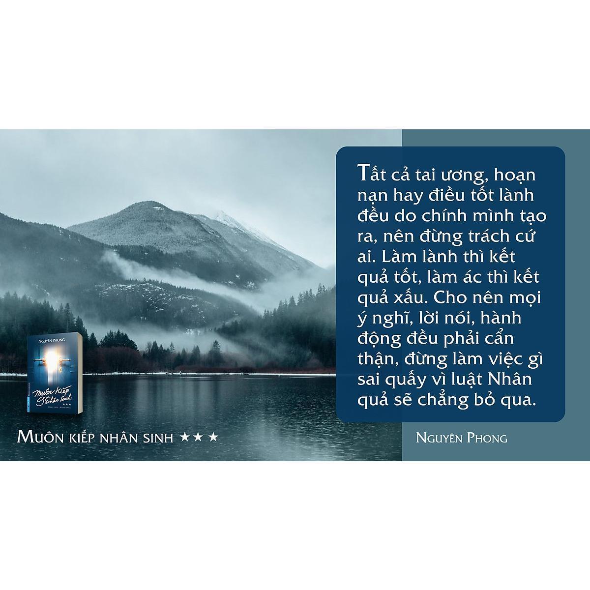 Thông qua 10 chương sách đan xen giữa quá khứ và hiện tại, giữa kể chuyện và lý luận, giữa hiện thực và huyền ảo, cuốn sách gợi ra những suy tư về vị thế và vai trò của con người nhỏ bé giữa vũ trụ bao la. Sau cùng, bảo toàn và phát huy tinh thần của hai tập trước, “Muôn Kiếp Nhân Sinh – tập 3”tiếp tục là một nỗ lực góp phần đưa con người về nẻo thiện, hướng đến một nhân loại hòa bình, bác ái, vị tha, bất kể màu da, quốc tịch và tôn giáo.