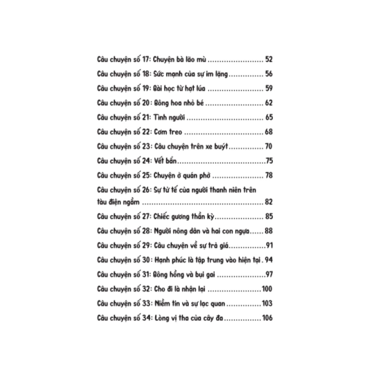Cuốn sách mang đến 40 bài học và mỗi bài học là một tấm gương phản chiếu những góc cạnh khác nhau của cuộc đời. Từ những câu chuyện đơn giản nhưng chứa đựng triết lý sâu sắc về sự tha thứ, lòng biết ơn, cho đến những câu chuyện phức tạp hơn về ý nghĩa của thành công, sự thất bại và giá trị của cuộc sống.