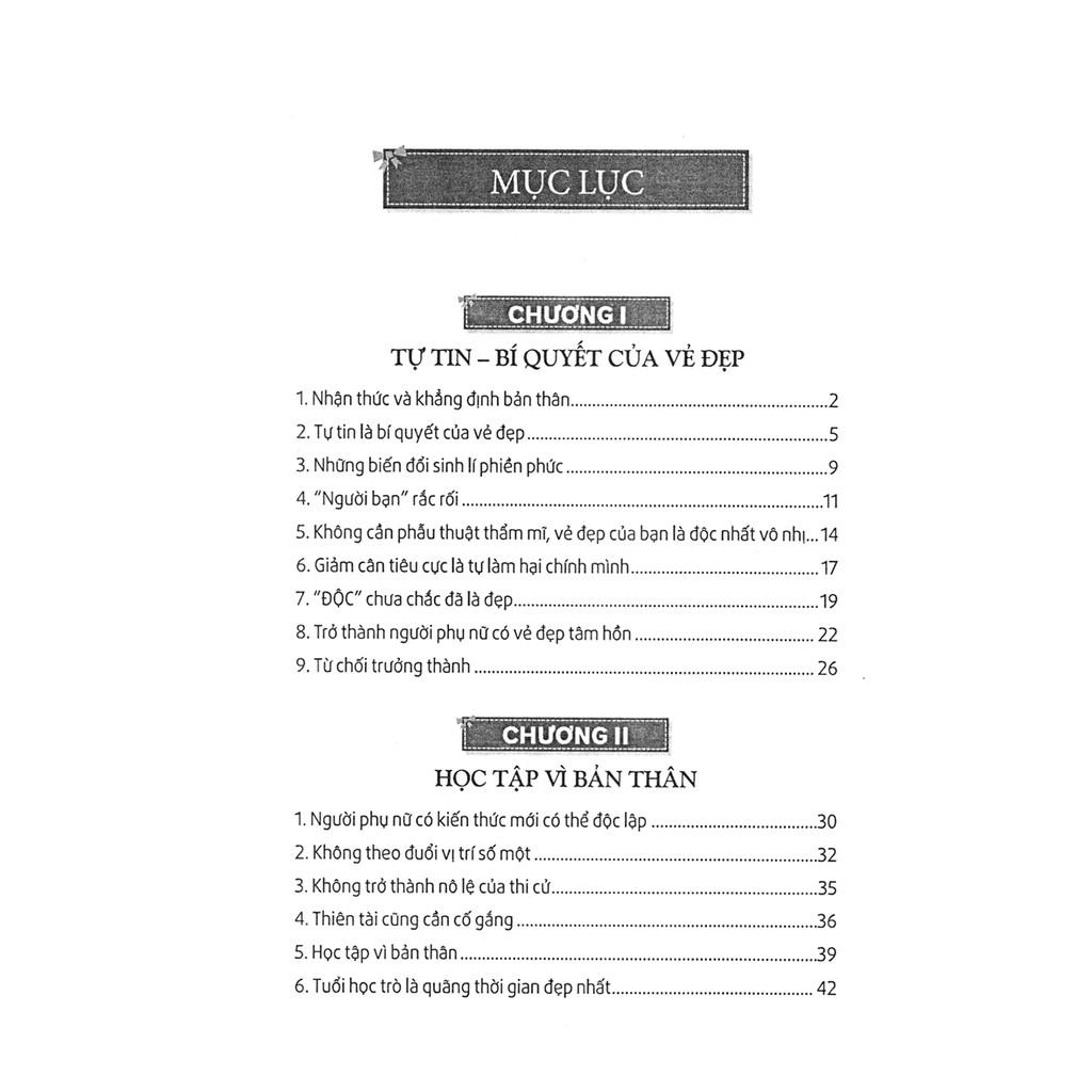 Tác giả : Diêu Hoa Dịch giả :Tuệ Văn Nhà xuất bản; Nhà xuất bản Phụ Nữ Kích thước : 16 x 23 cm Năm xuất bản : 2017 Số trang : 208 Khối lượng : 240 grams Bìa : Bìa Mềm Tay Gập Xã hội ngày nay bày ra thật nhiều cám dỗ, thách thức và cạm bẫy với thiếu nữ. Con gái sai một ly đi một dặm. Giúp con gái tự tin đối mặt và vững vàng vượt qua những vấn đề của tuổi teen là nhiệm vụ của tất cả những bậc làm cha mẹ, trước hết là người mẹ. Tự tin là bí quyết của vẻ đẹp “Vẻ đẹp thanh xuân không thể tồn tại mãi mãi, nhưng khí chất và sự cuốn hút có thể làm nên vẻ đẹp không bao giờ bị lãng quên.” Học tập vì bản thân “Thiên tài cũng cần cố gắng” “Những người lịch sự và lễ phép thường được người khác yêu mến. Trở thành người lịch sự không khó, chỉ cần chú ý, đặc biệt là những chuyện nhỏ nhặt nhất trong cuộc sống, dần sẽ hình thành thói quen tốt, hoàn thiện kĩ năng giao tiếp.” Để dạy cho con gái cách rèn luyện tính cách thân thiện, hòa đồng cha mẹ có thể cho con thường xuyên tham gia các hoạt động xã hội. Các hoạt động đó có thể là cắm trại, họp lớp, tham gia các lớp tình nguyện hè, giúp đỡ người khác. Ngoài ra các mẹ cũng nên khuyến khích con có thêm nhiều bạn bè. Thay vì kiểm tra chặt chẽ danh sách những người bạn, mẹ có thể dạy con nên lựa chọn một người bạn tốt là như thế nào. Và cuối cùng mẹ cũng đừng quên khen con, điều đó sẽ giúp con trở nên tự tin, và sẽ tiếp tục phát huy các đức tính tốt đẹp. Học cách giao tiếp và thích nghi với xã hội “Nên tránh xa “kiêu ngoại” và “đố kị”, hãy là một người con gái lạc quan và khiêm tốn, có như vậy, đường đời mới trở nên bằng phẳng và rộng rãi, cuộc sống mới trở nên tốt đẹp hơn.” Cuộc sống không nên mất phương hướng do hiếu kì Tình yêu cần sự thấu hiểu từ hai phía “Học sinh trung học có bắt buộc phải yêu một lần cho biết?” Mẹ nên khiến con gái hiểu rằng trước khi bắt đầu một mối tình nên có những hiểu biết nhất định về đối phương. Tình yêu cần sự thận trọng hơn là những kích động nhất thời có thể dẫn đến những sai lầm sau này. Những điều mà mẹ cần biết Kết: Mỗi đứa trẻ đều là tấm gương phản chiếu của cha mẹ mình. Nếu cô con gái của bạn lớn lên xinh đẹp và giỏi giang thì nhất định cô ấy có một người mẹ thấu hiểu đạo lý và cách cư xử.