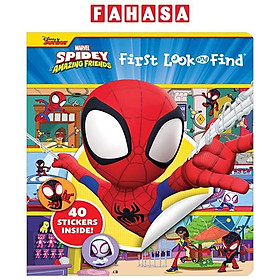 First Look And Find & Stickers Marvel Spidey Includes 40 stickers! Save the day with Spidey, Ghost-Spider, and Spin as you search for hidden things in 7 scenes! Then flip to the end of the