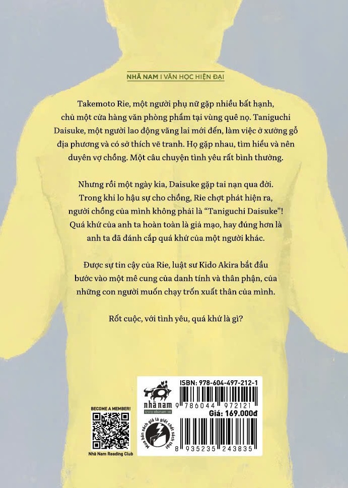 Nhưng rồi một ngày kia, Daisuke gặp tai nạn qua đời. Trong khi lo hậu sự cho chồng, Rie chợt phát hiện ra, người chồng của mình không phải là “Taniguchi Daisuke”! Quá khứ của anh ta hoàn toàn là giả mạo, hay đúng hơn là anh ta đã đánh cắp quá khứ của một người khác.