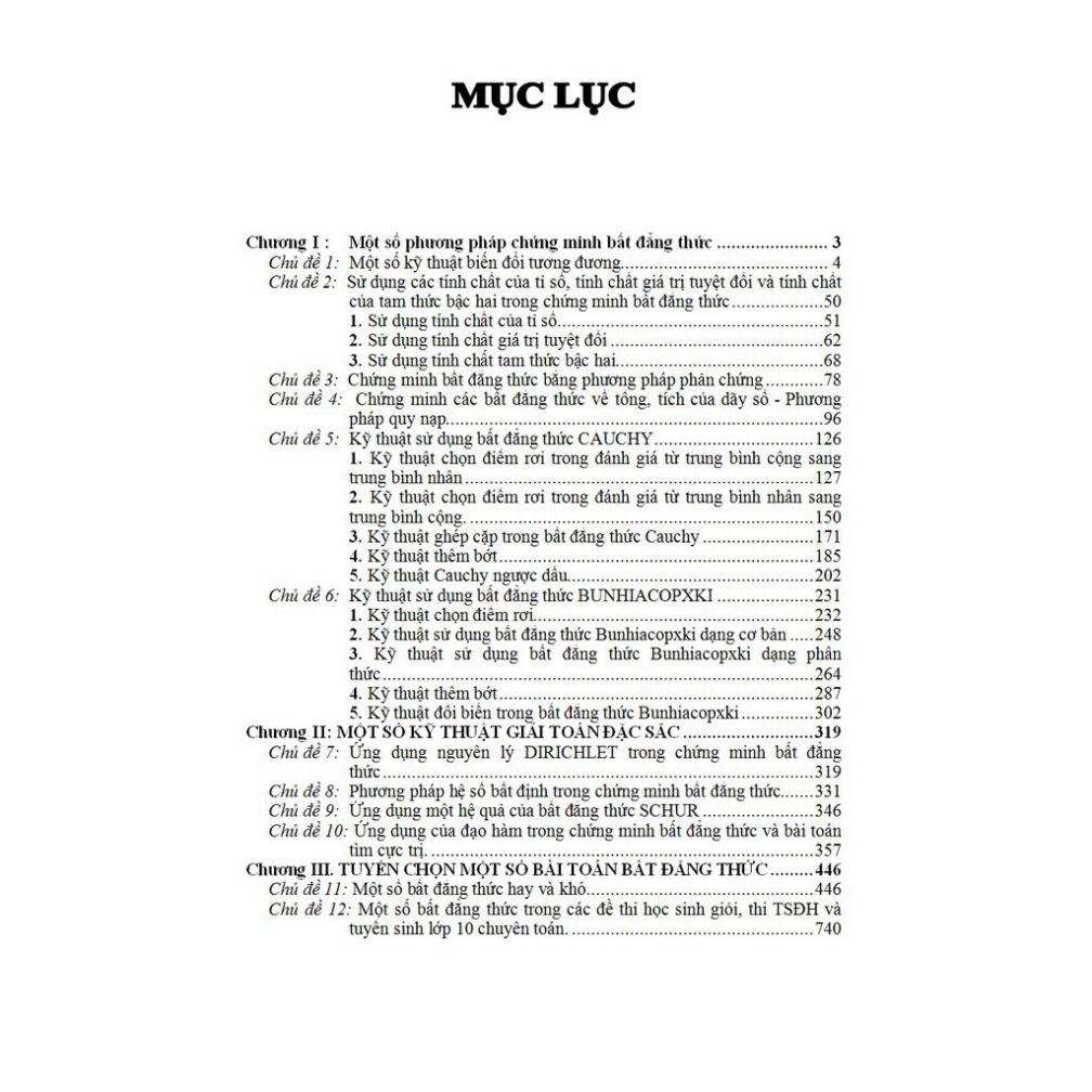 Chương I. Một số phương pháp chứng minh bất đẳng thức. Chương II. Một số kỹ thuật giải toán đặc sắc. Chương III. Tuyển chọn một số bài toán về bất đẳng thức. Với cách viết đặt bạn đọc vào vị trí người giải, lối suy nghĩ phân tích bài toán một cách tự nhiên nhưng vẫn đảm bảo tính khoa học, hy vọng cuốn sách sẽ thực sự có ích cho bạn đọc trên con được chinh phục các bài toán về bất đẳng thức.
