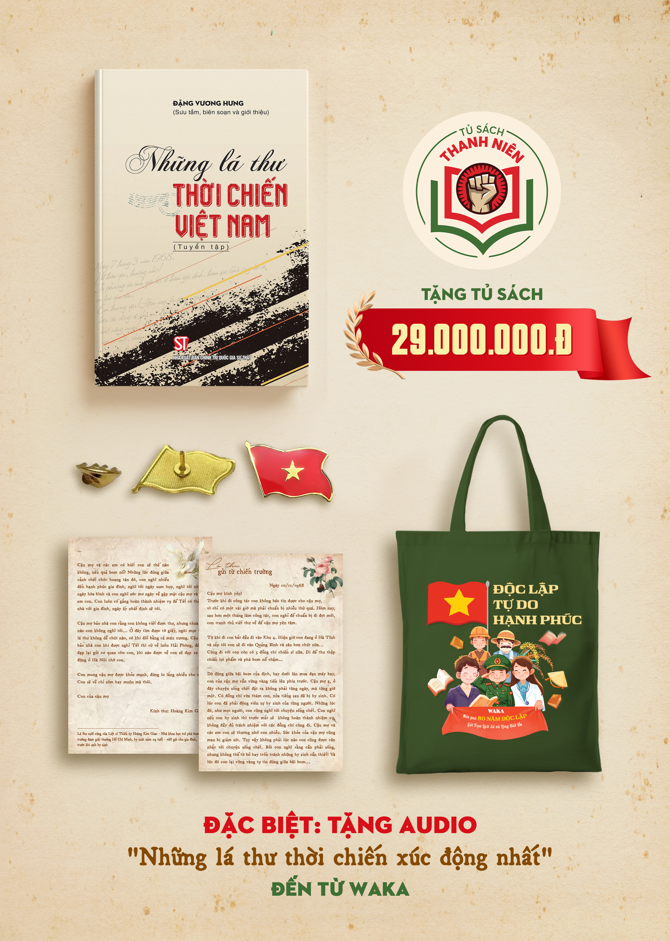Quà Tết Độc Lập 2/9 - Những Lá Thư Thời Chiến - Độc Quyền Fahasa Bộ sản phẩm bao gồm: 1. Sách “Những lá thư thời chiến” – tập hợp những bức thư chân thực, xúc động từ chiến trường, thấm đ...
