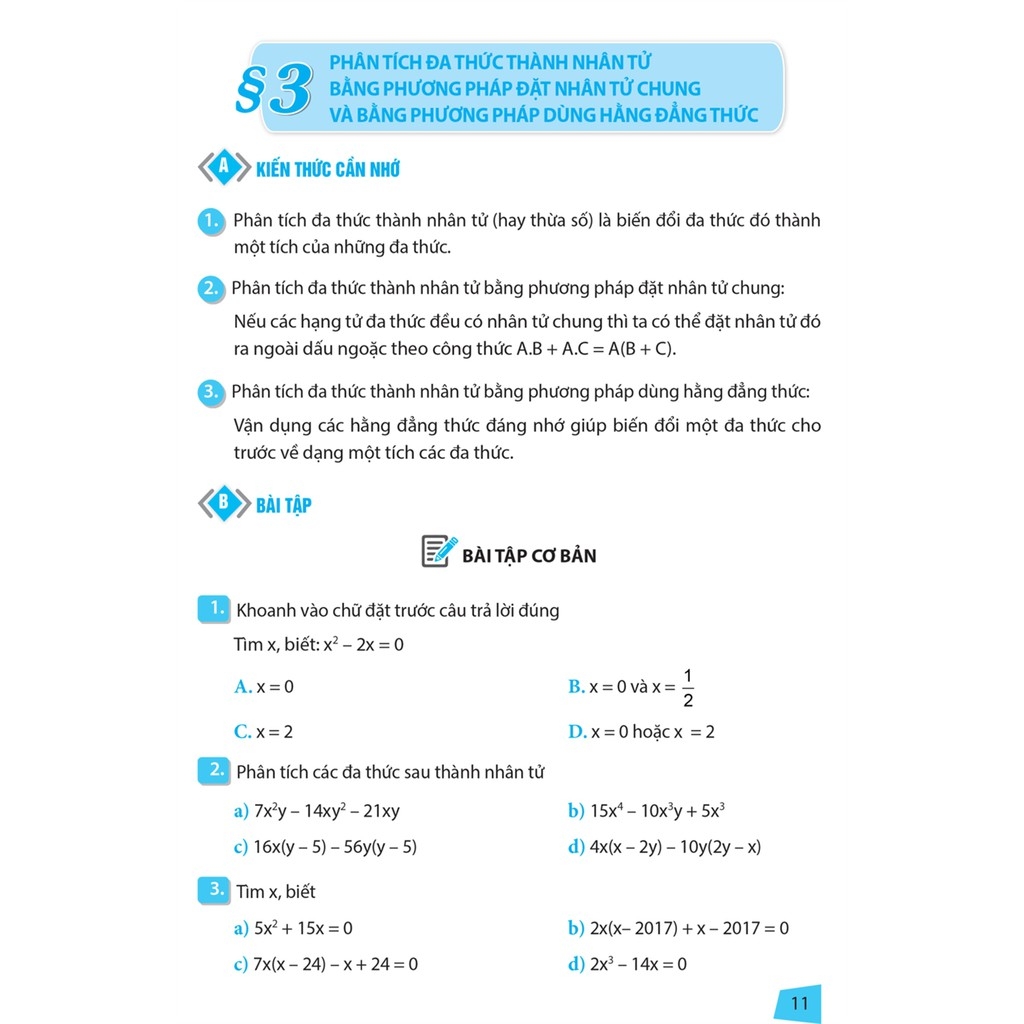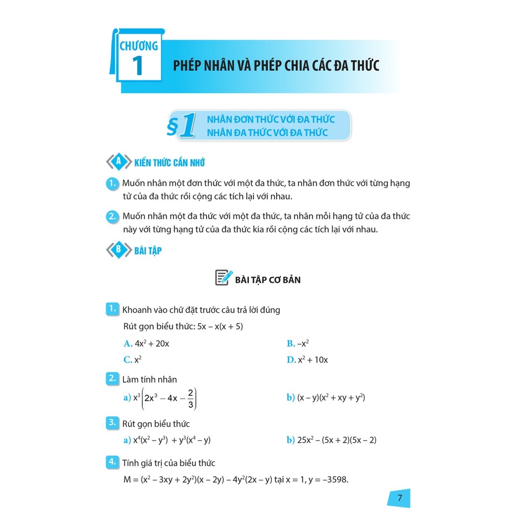 I. Bài tập cơ bản: Kiểm tra, đánh giá mức độ kiến thức và kĩ năng cơ bản, rèn kĩ năng giải toán.