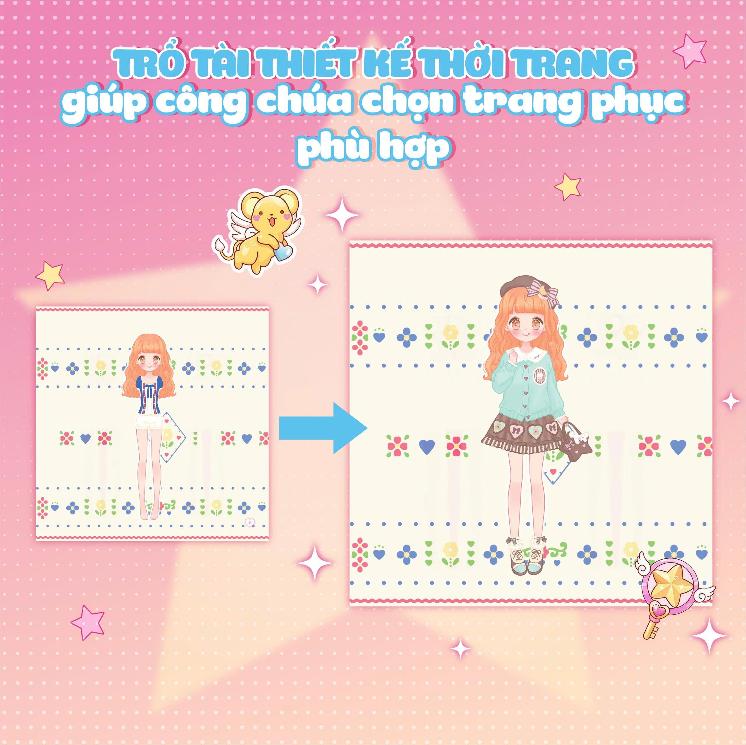 - 100+ Sticker đa dạng – sáng tạo không giới hạn Váy áo, phụ kiện và chi tiết dễ thương giúp bé thoải mái phối đồ theo ý thích. Mỗi cuốn có 10 công chúa Anime với phong cách riêng, cho bé nhiều trải nghiệm mới lạ.