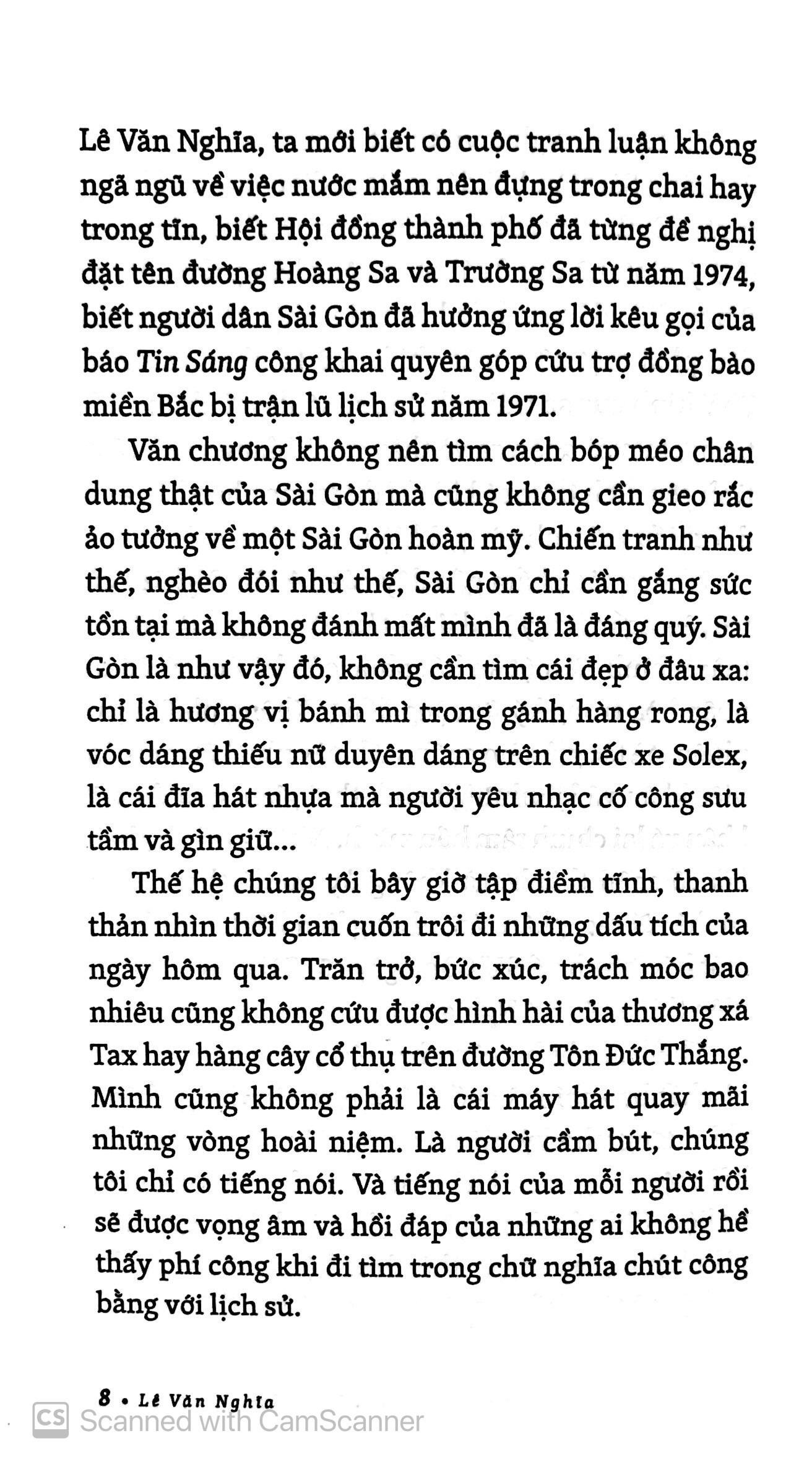 Quyển sách tập hợp những bài viết ngắn nhìn lại Sài Gòn ngày hôm qua, không phải bằng cặp mắt của nhà nghiên cứu mà của một người tha thiết yêu Sài Gòn, gắn bó với mảnh đất này từ bé và kể lại các câu chuyện thông qua những mảnh kỷ niệm; đó có thể là những câu chuyện hết sức sống động về chuyện ăn, uống, giải trí, thói quen sinh hoạt… cho đến những nhận định sâu sắc hơn về lịch sử, dấu tích cha ông trên một vùng đô thị đang hiện đại hóa từng ngày.