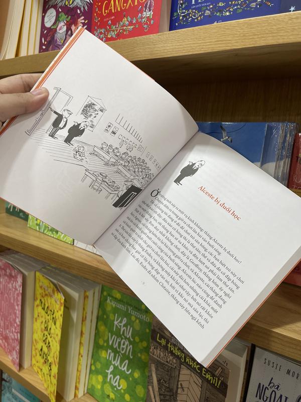 “Chiều nay, trong lúc đi đến trường, tôi gặp Alceste cái thằng lại nói với tôi: "Hay là mình không đến trường?" Tôi nói với nó rằng không đến trường thì không hay đâu, rằng cô giáo sẽ không hài lòng, rằng bố tôi sẽ bảo tôi rằng cần phải học tập nếu người ta muốn thăng tiến trong đời và làm phi công, rằng điều đó sẽ làm mẹ tôi lo lắng và rằng nói dối là điều không tốt. Alceste trả lời tôi rằng chiều hôm nay chúng tôi học số học đấy, thế là tôi nói "thôi được" và chúng tôi không đi đến trường nữa.”