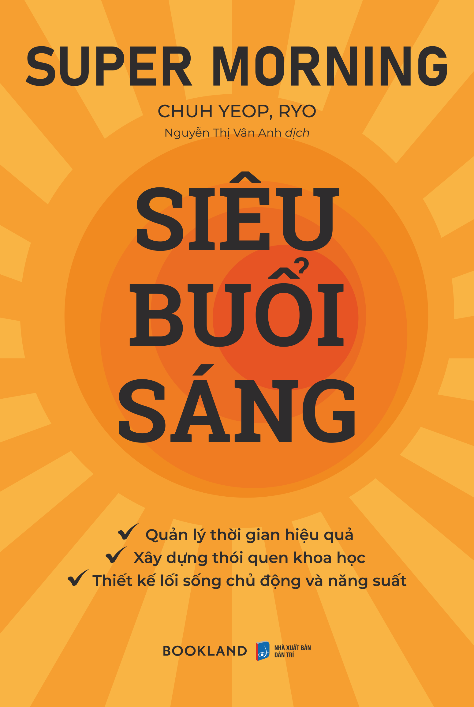 - Modification: Điều chỉnh để cải thiện Với hơn 10 năm kiên trì thực hành “Siêu buổi sáng” và thu về nhiều lợi ích không nhỏ từ nó, hơn ai hết, tác giả Chuh Yeop Ryo hiểu rằng chỉ bằng cách lựa chọn bắt đầu trước, dù bằng nỗ lực nhỏ là thức dậy sớm hơn người khác, chúng ta mới có thể dễ dàng đạt nhiều thành công hơn nữa trong tương lai. Thế giới chúng ta đang sống không phải một câu chuyện cổ tích đầy mộng tưởng mà là một xã hội cạnh tranh có tính thực tế, vậy nên người nào xây dựng và áp dụng hệ thống này càng nhanh thì sẽ càng có lợi thế hơn những người bắt đầu muộn. Thứ công bằng nhất trên thế giới là thời gian. Ai cũng có một quỹ thời gian buổi sáng như nhau, và việc sử dụng nó sao cho hiệu quả không phải là điều chỉ những người có khả năng phi thường mới làm được. Ngay cả một mục tiêu lý tưởng cũng có thể đạt được trọn vẹn nếu chúng ta tạo ra một quá trình vững chắc thông qua kỳ tích của thời gian buổi sáng. Không lãng phí một giây nào, nhìn thẳng hướng mục tiêu mà bản thân mong muốn và tiến lên dù chỉ một bước - suy cho cùng, đây chẳng phải là cách chúng ta trân trọng và yêu cuộc sống của chính m.ình hay sao? Chưa biết chừng, chính những buổi sáng sớm đó sẽ thay đổi cuộc sống của bạn một cách đáng kể. Hãy tin rằng với “Siêu buổi sáng”, bạn có thể hoàn thành một câu chuyện tuyệt vời mà chỉ bản thân m.ình mới có thể viết ra.