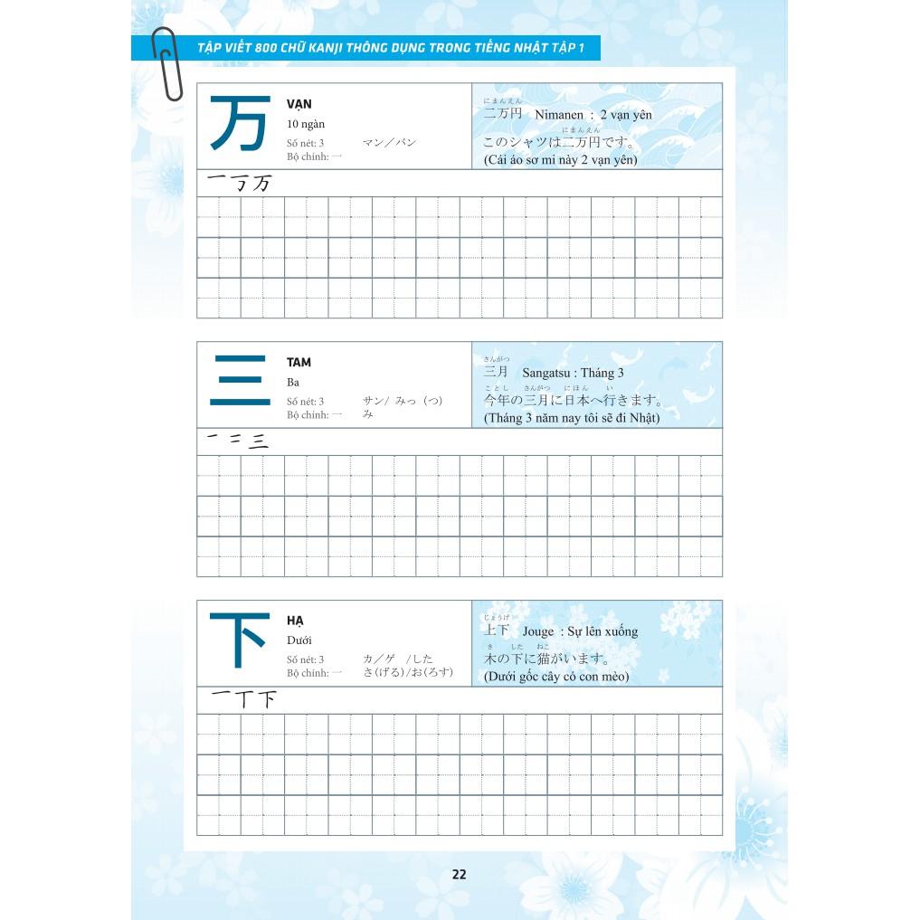 Tập viết chữ KANJI trong tiếng Nhật dành cho người mới bắt đầu Một là hướng đi của nét bút: Hai là thứ tự trước sau trong khi viết các nét chữ: ======== NXB: NXB