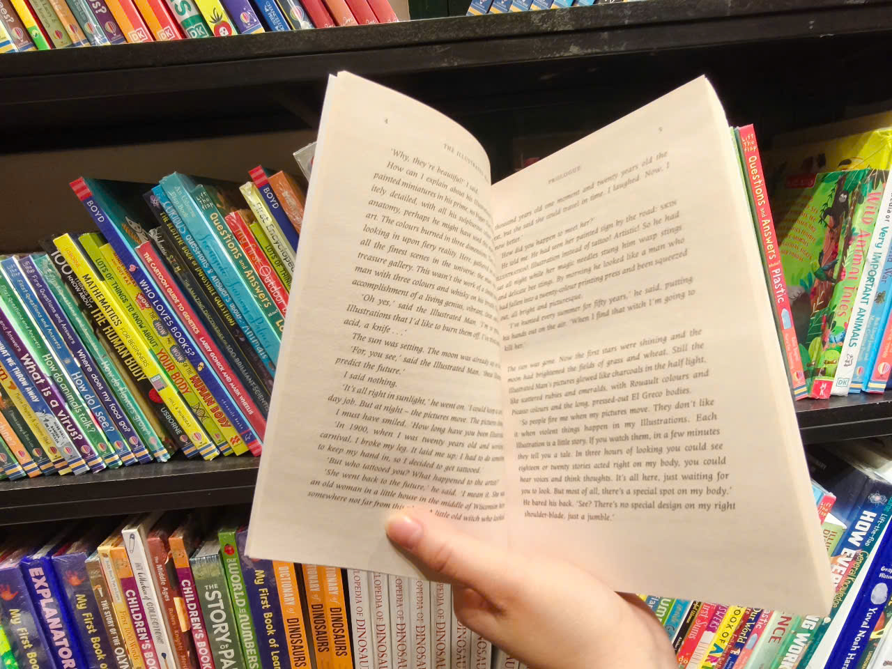 Một bộ sưu tập truyện cổ điển - tất cả đều được kể trên da người - từ tác giả của Fahrenheit 451. Nếu El Greco đã vẽ những bức tranh thu nhỏ trong thời kỳ đỉnh cao của mình, không lớn hơn bàn tay của bạn, vô cùng chi tiết, với màu lưu huỳnh và giải phẫu cơ thể người tinh tế, có lẽ ông đã có thể sử dụng cơ thể của người đàn ông này cho nghệ thuật của mình. . . Tuy nhiên, Người đàn ông minh họa đã cố gắng đốt cháy các hình minh họa. Ông đã thử giấy nhám, axit và dao. Bởi vì, khi mặt trời lặn, những bức tranh sáng lên như than củi, như những viên ngọc rải rác. Chúng rung lên và trở nên sống động. Đôi bàn tay hồng nhỏ xíu cử chỉ, đôi môi nhỏ xíu nhấp nháy khi các nhân vật kể lại câu chuyện của họ - giọng nói vang lên, nhỏ và trầm, dự đoán tương lai. Dưới đây là mười sáu câu chuyện: mười sáu hình minh họa. . . câu chuyện thứ mười bảy là tương lai của riêng bạn được kể trên làn da của Người đàn ông minh họa.